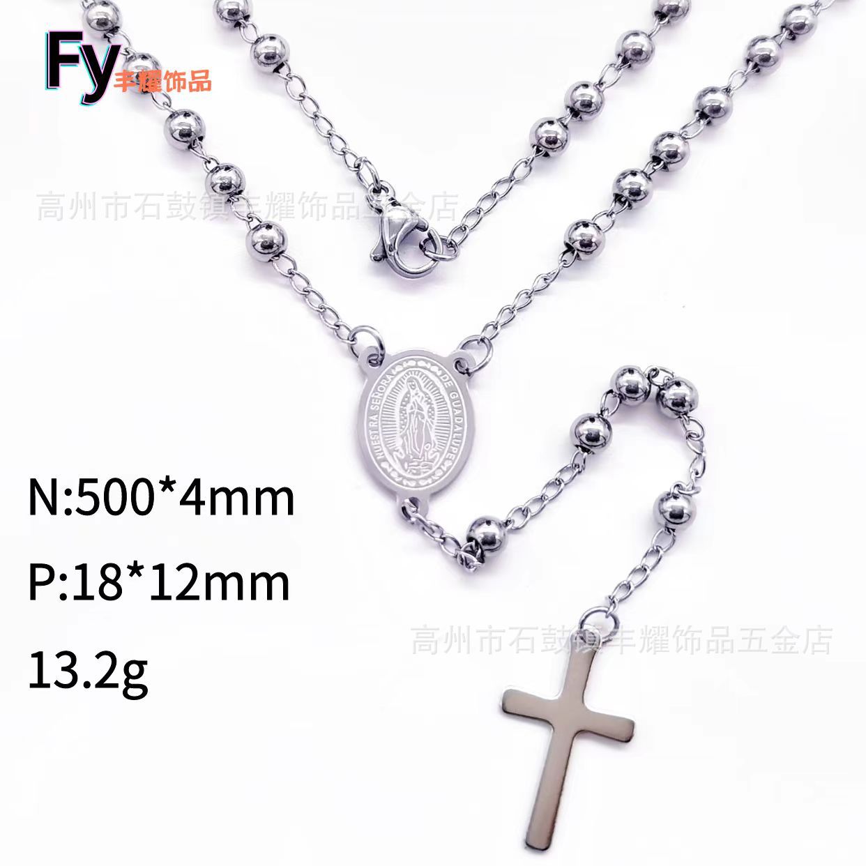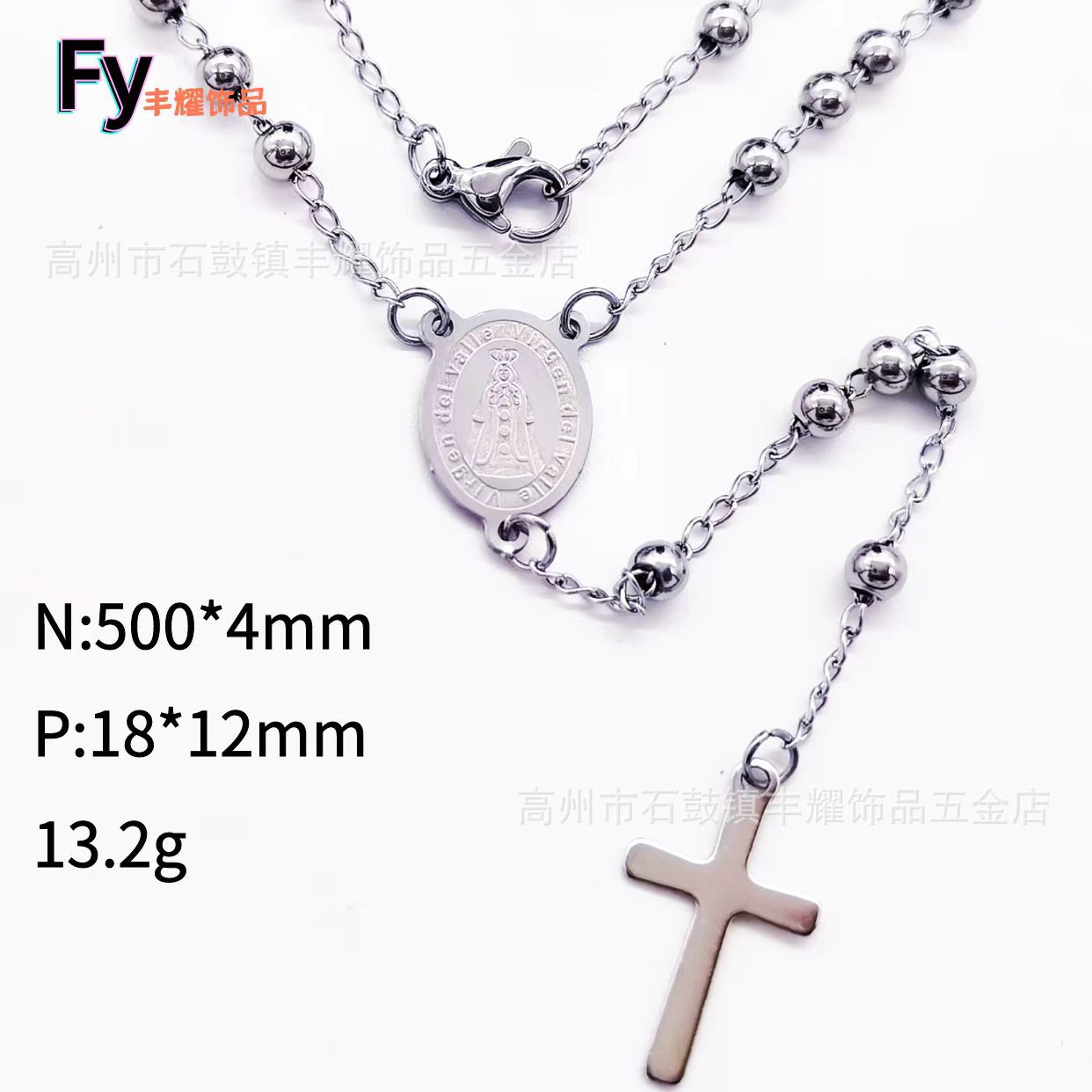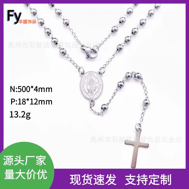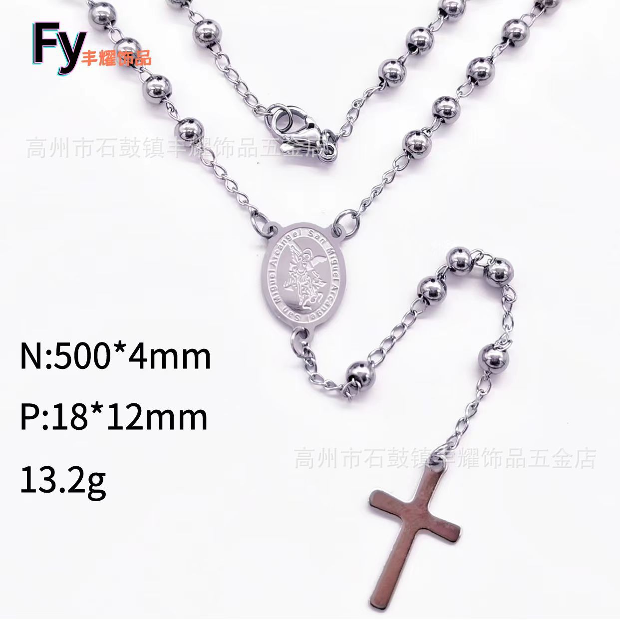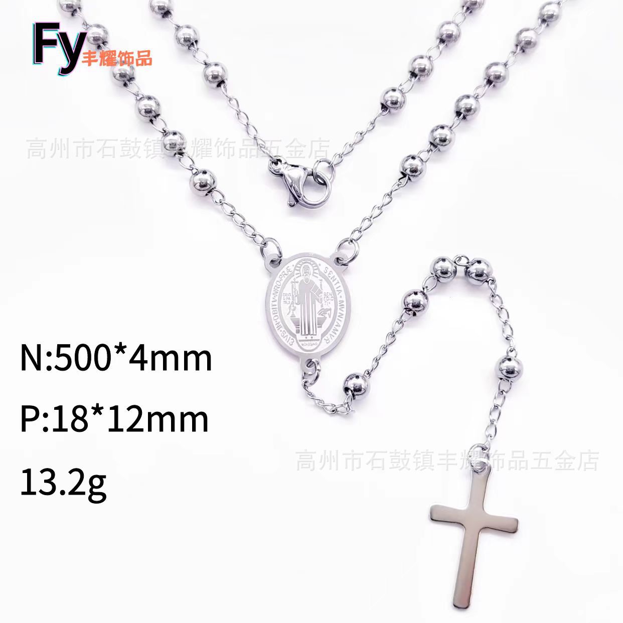 Трансграничная горячая распродажа 4 мм вычет стальное ожерелье из бисера цепочка на ключицу из нержавеющей стали круглое ожерелье из бисера крест ожерелье