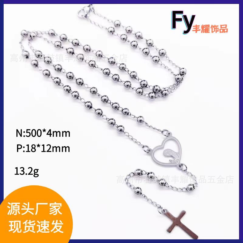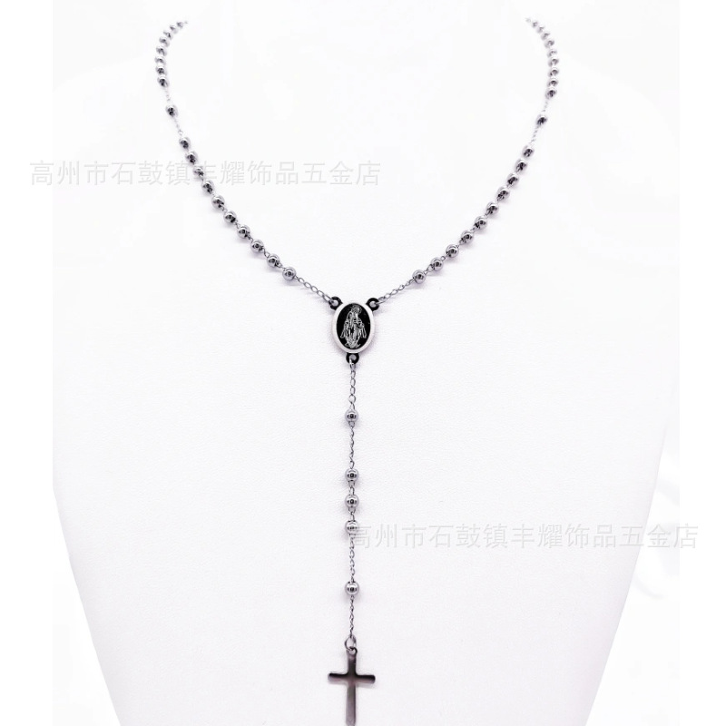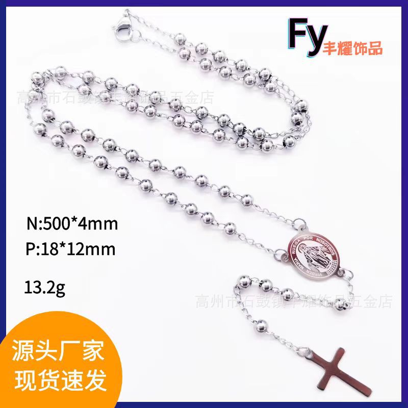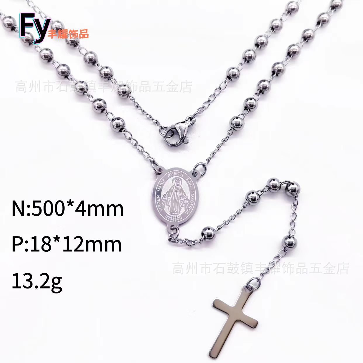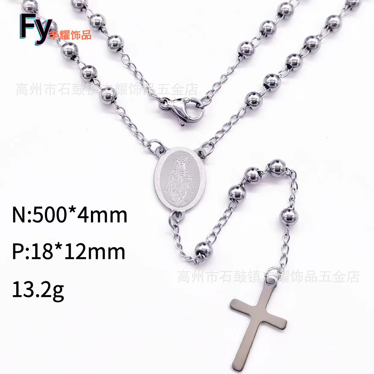 Трансграничная горячая распродажа 4 мм вычет стальное ожерелье из бисера цепочка на ключицу из нержавеющей стали круглое ожерелье из бисера крест ожерелье
