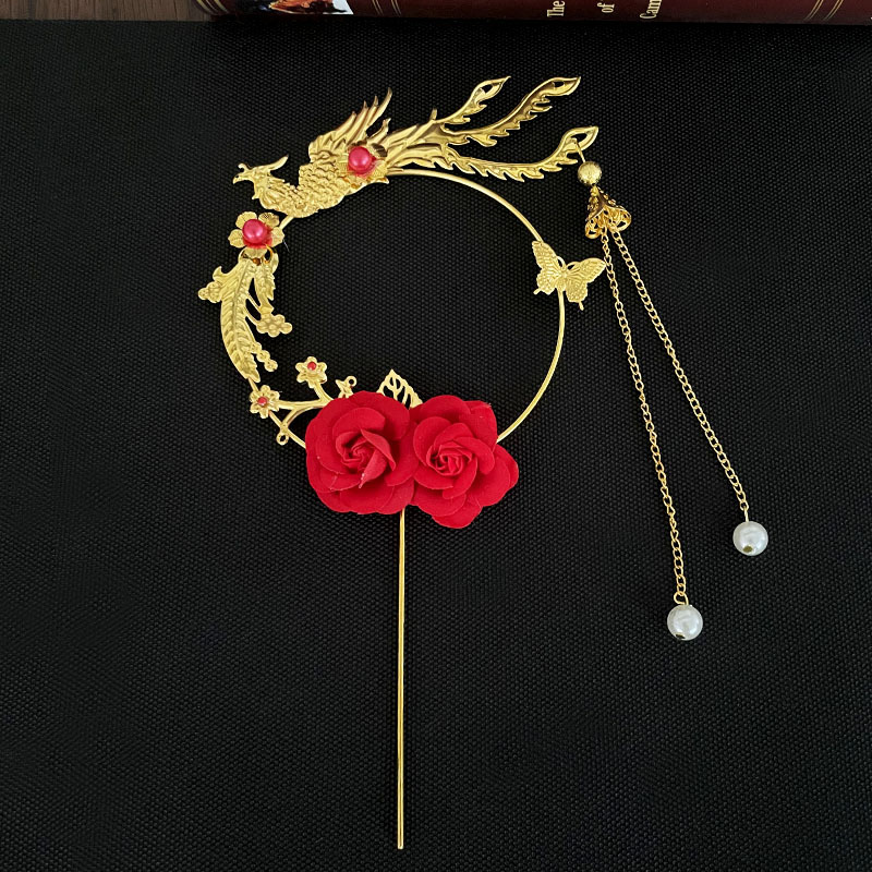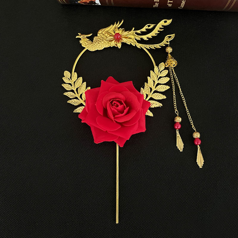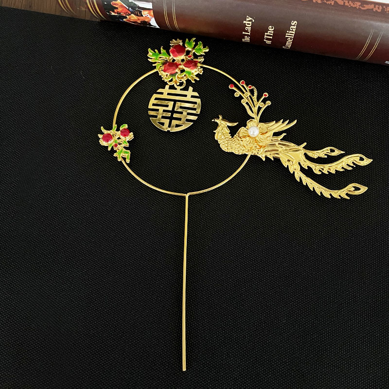 Декор для торта в китайском стиле, антикварный золотой топпер, аксессуары для свадьбы и помолвки, феникс, символ единства, накладка, необходимый элемент для свадебного торжества
