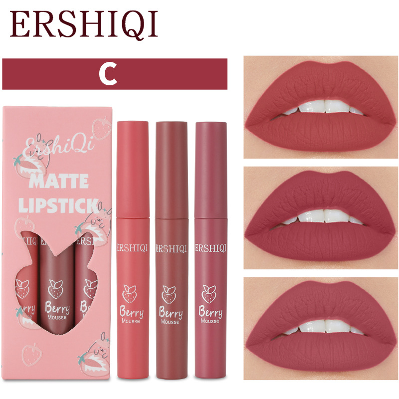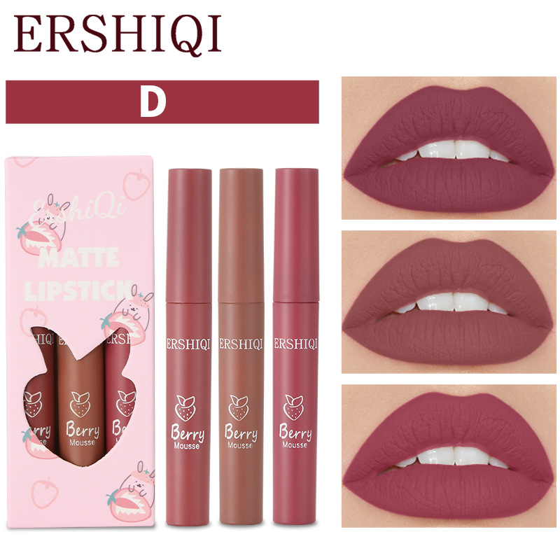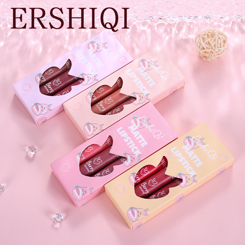 Эксклюзивная трансграничная новинка: матовая помада-блеск ErshiQi, стойкая, не оставляет следов, 3 отдельных блеска для губ