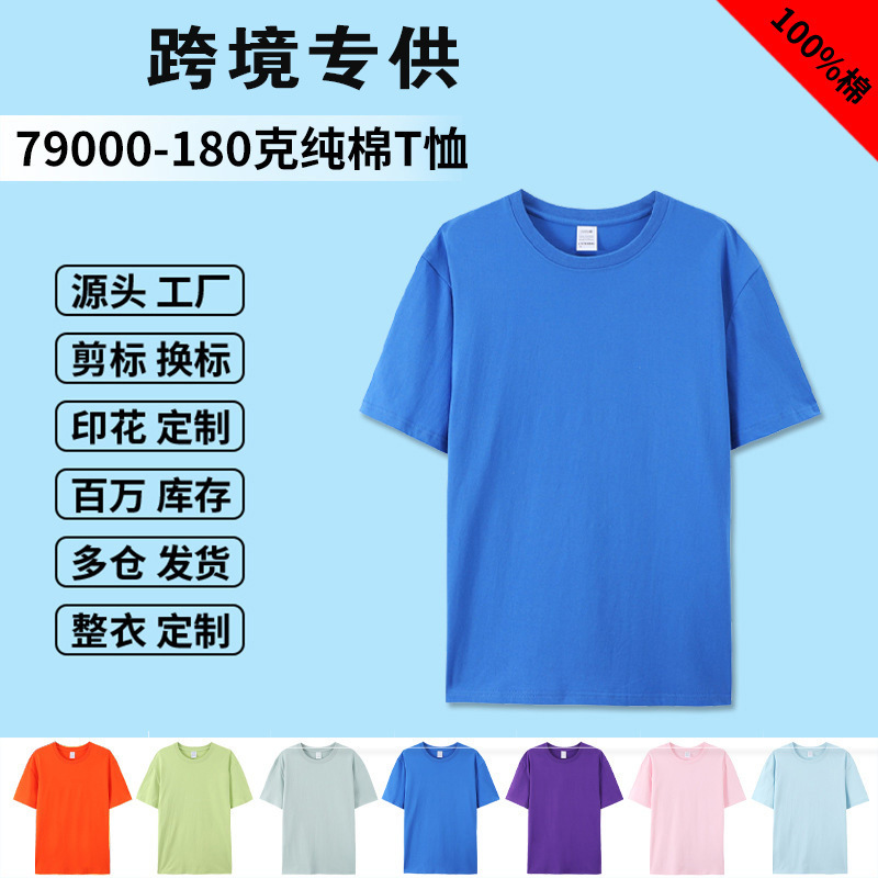 79000 трансграничная футболка на заказ больших размеров Азиатско-Европейский размер 180 грамм хлопка пустая футболка с круглым вырезом и коротким рукавом