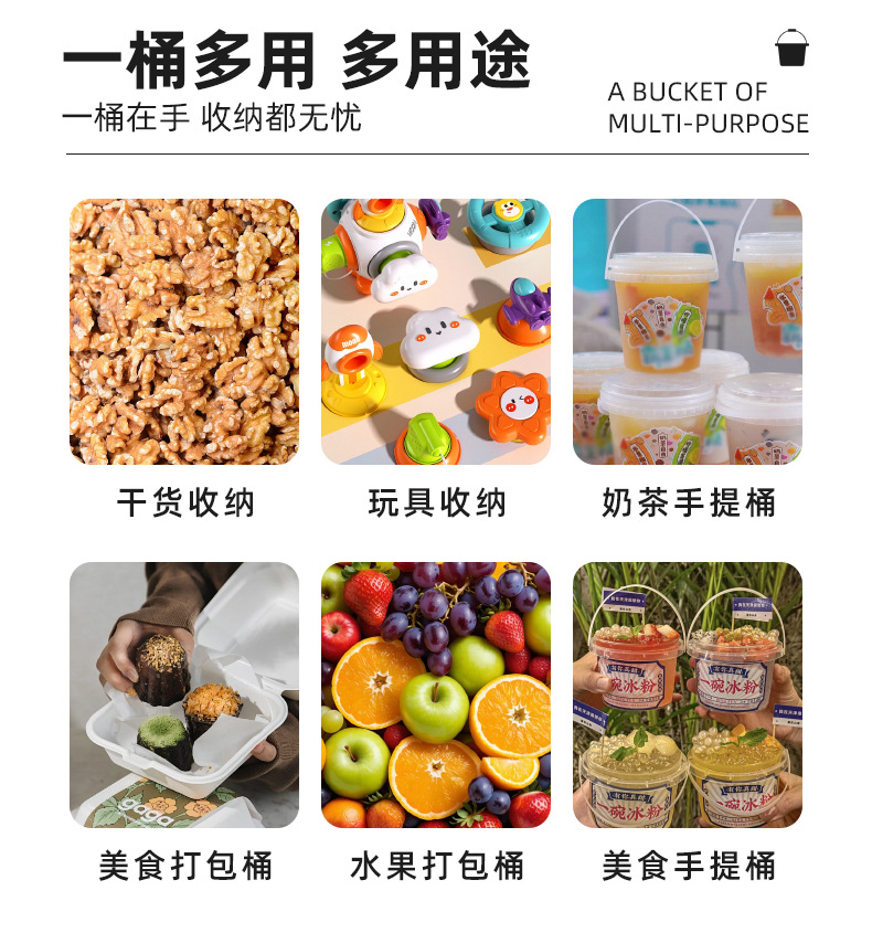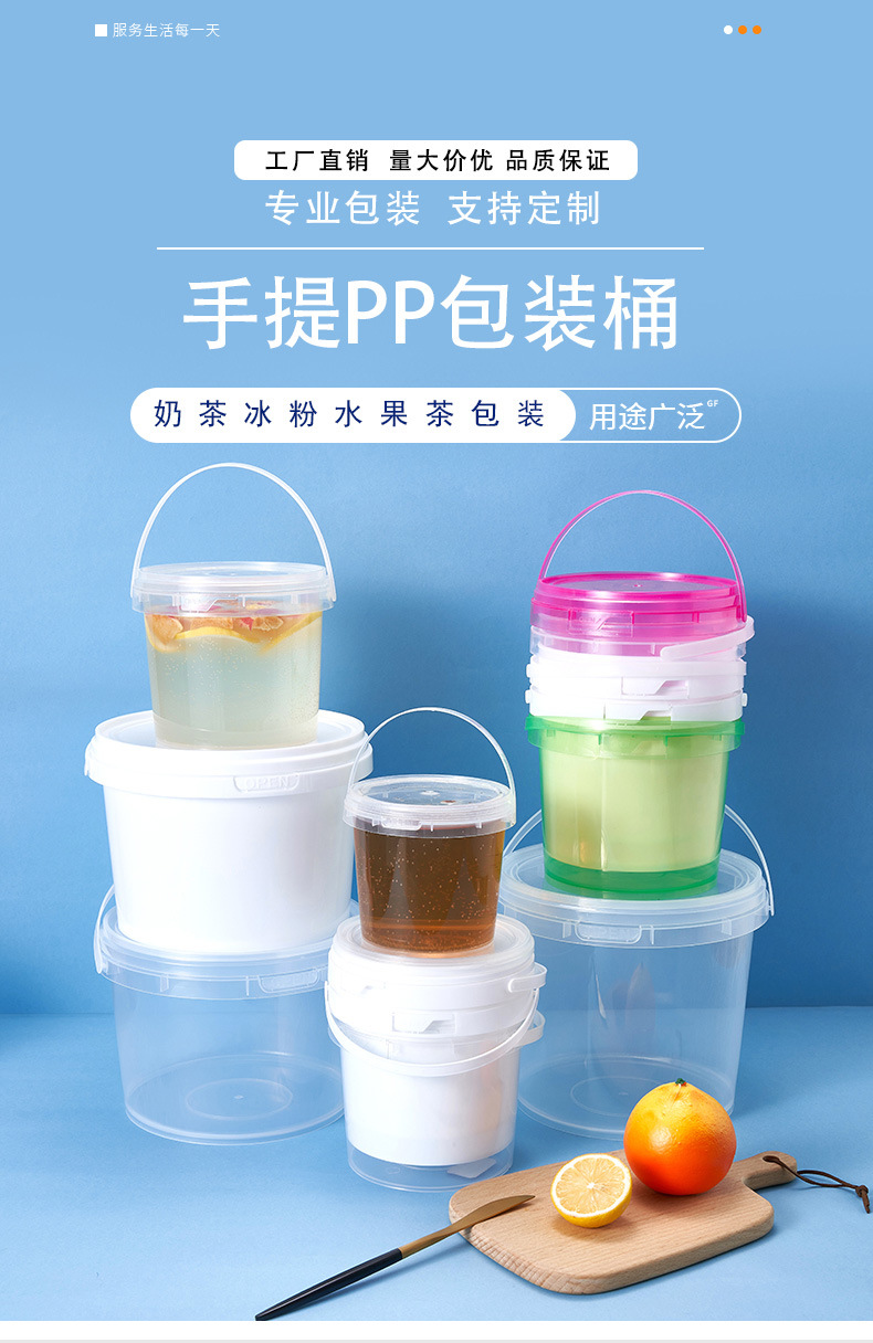 1-5L Прозрачные пластиковые ведра Коммерческие одноразовые упакованные бочки ручные ведра для чая с молоком тонна тонна бочки с герметичными бочками для ледяного порошка чашки