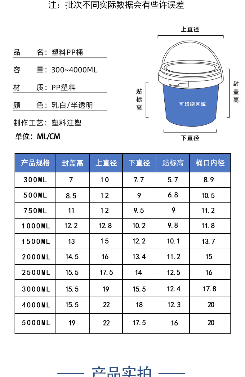 150ml; 300ml; 500ml; 750ml; 1L; 1.5L; 2L; 2.5L; 3L; 4L; 5L