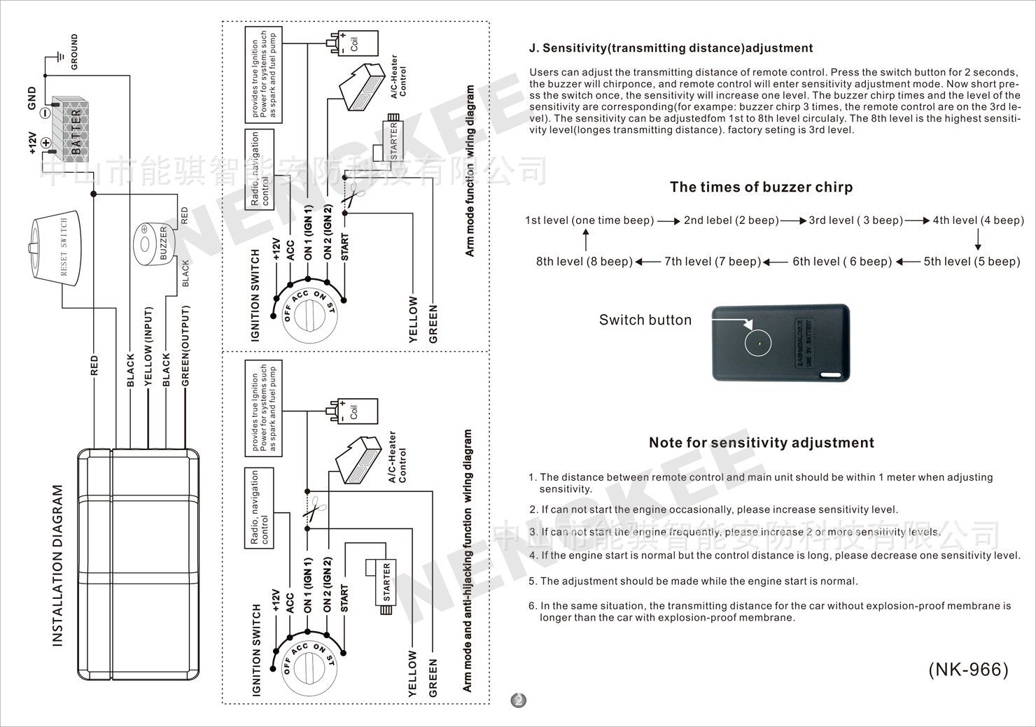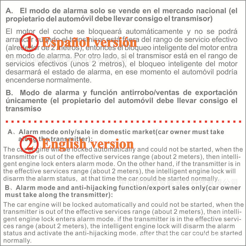 3. It also can match with the car alarm system which has remote 4. Beyond 2 meters,Engine locked automatically