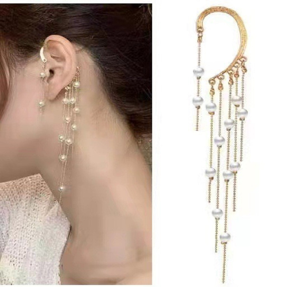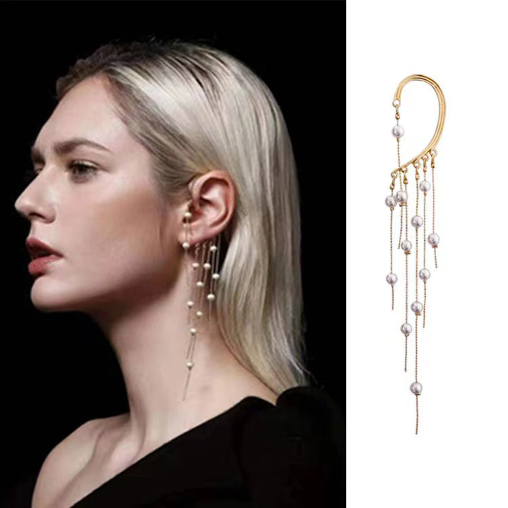 Европейские и американские трансграничные серьги, элегантные серьги с кисточками из жемчуга богини без пирсинга, модные длинные преувеличенные серьги