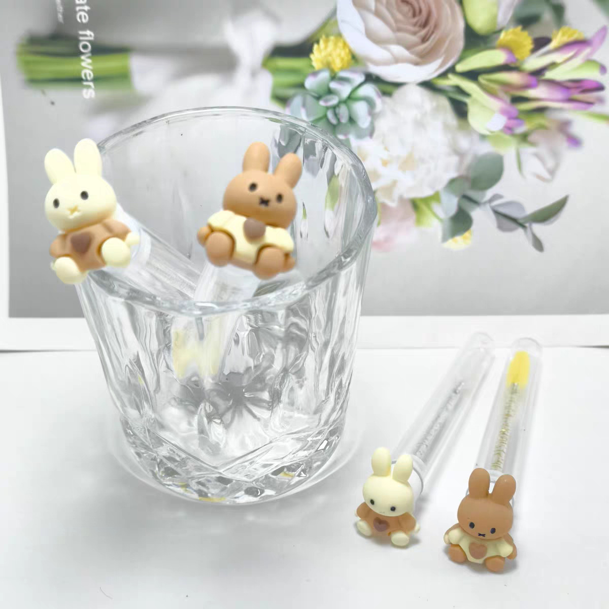 Мини-щеточка для ресниц в виде мультяшного персонажа с тюбиком, прозрачная щеточка-расческа в тюбике, независимая одноразовая щеточка для тестовых пробирок, мультяшная серия щеточек для ресниц.