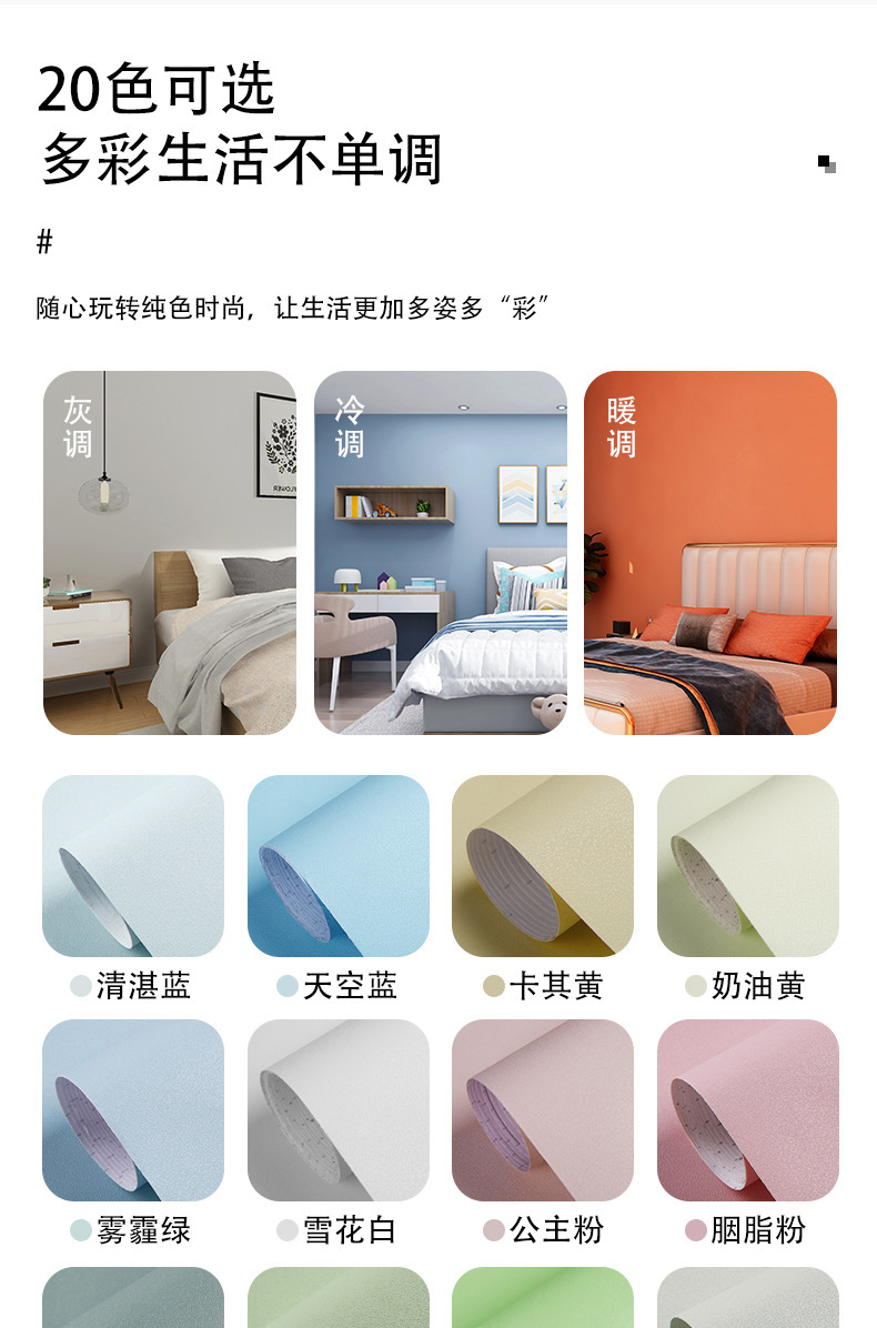 Самоклеящиеся обои для арендной комнаты, спальни, в стиле Моранди, из ПВХ, водонепроницаемые и влагостойкие, однотонные наклейки на стену.