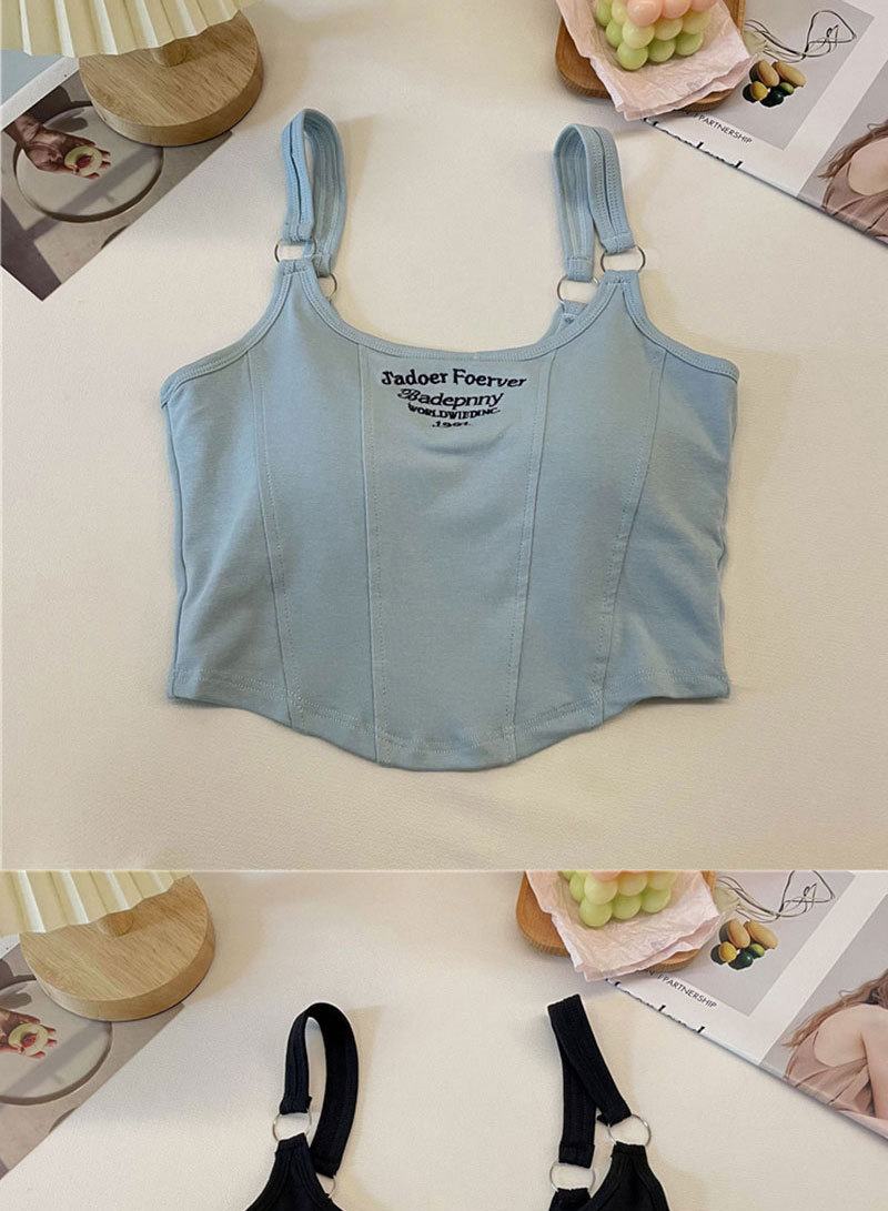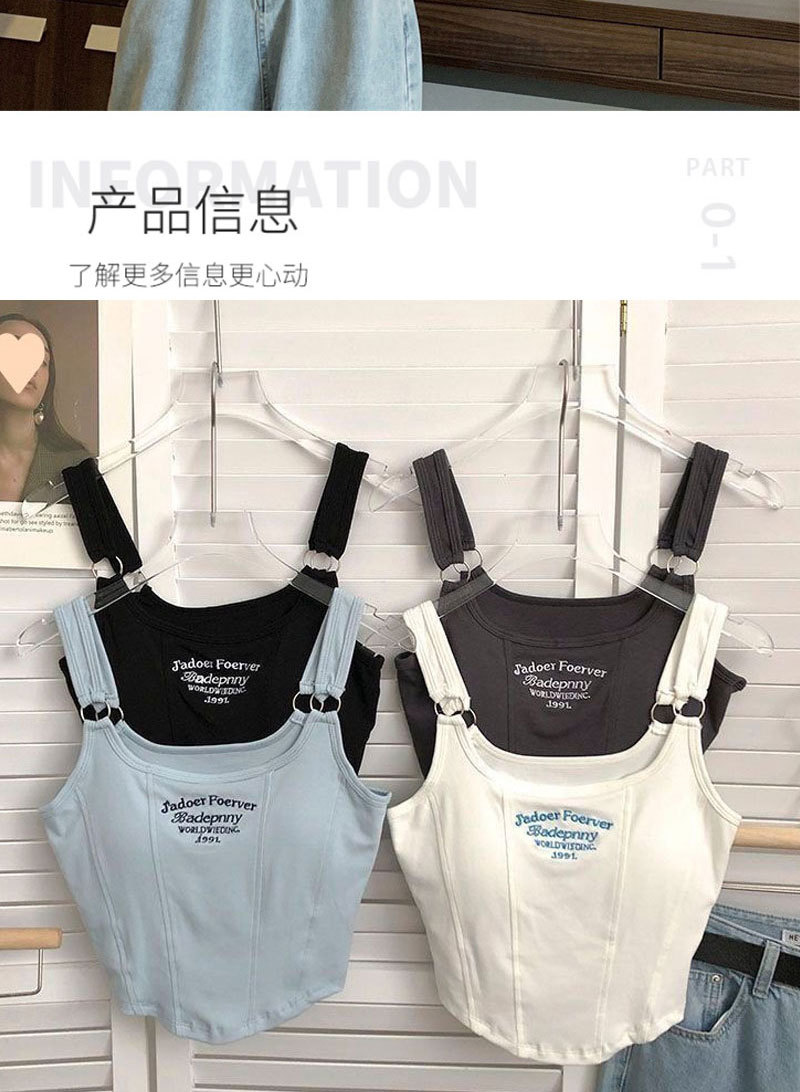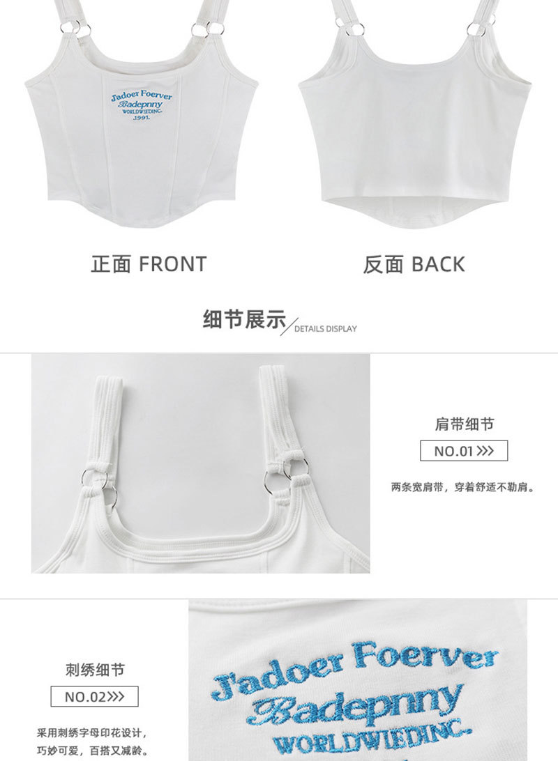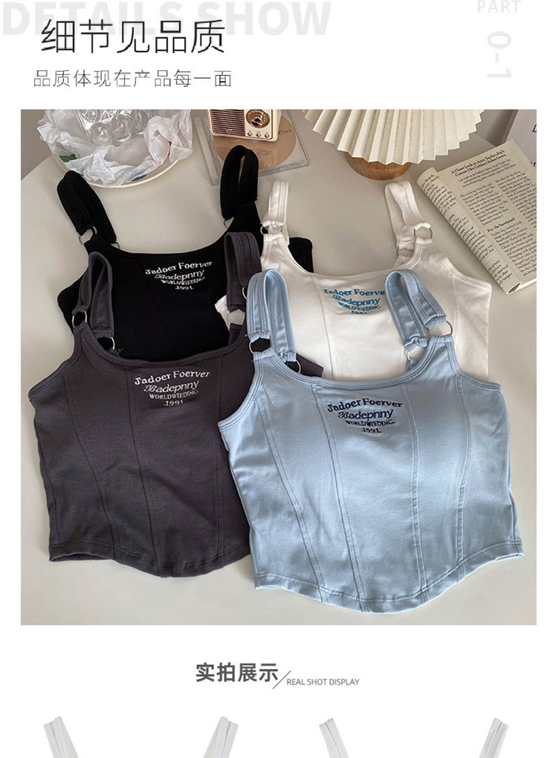 Новый интернет-знаменитость Pure Letter Sling Beauty Back Vest Цельный фиксированный жилет с запахом для чашки на груди Верхняя одежда База Короткий Топ