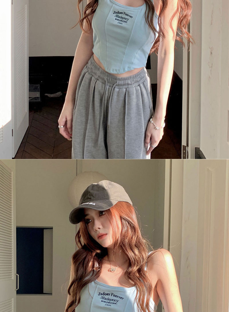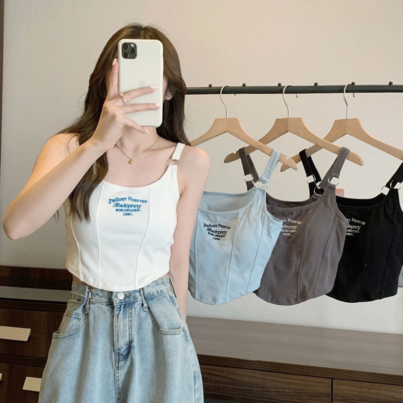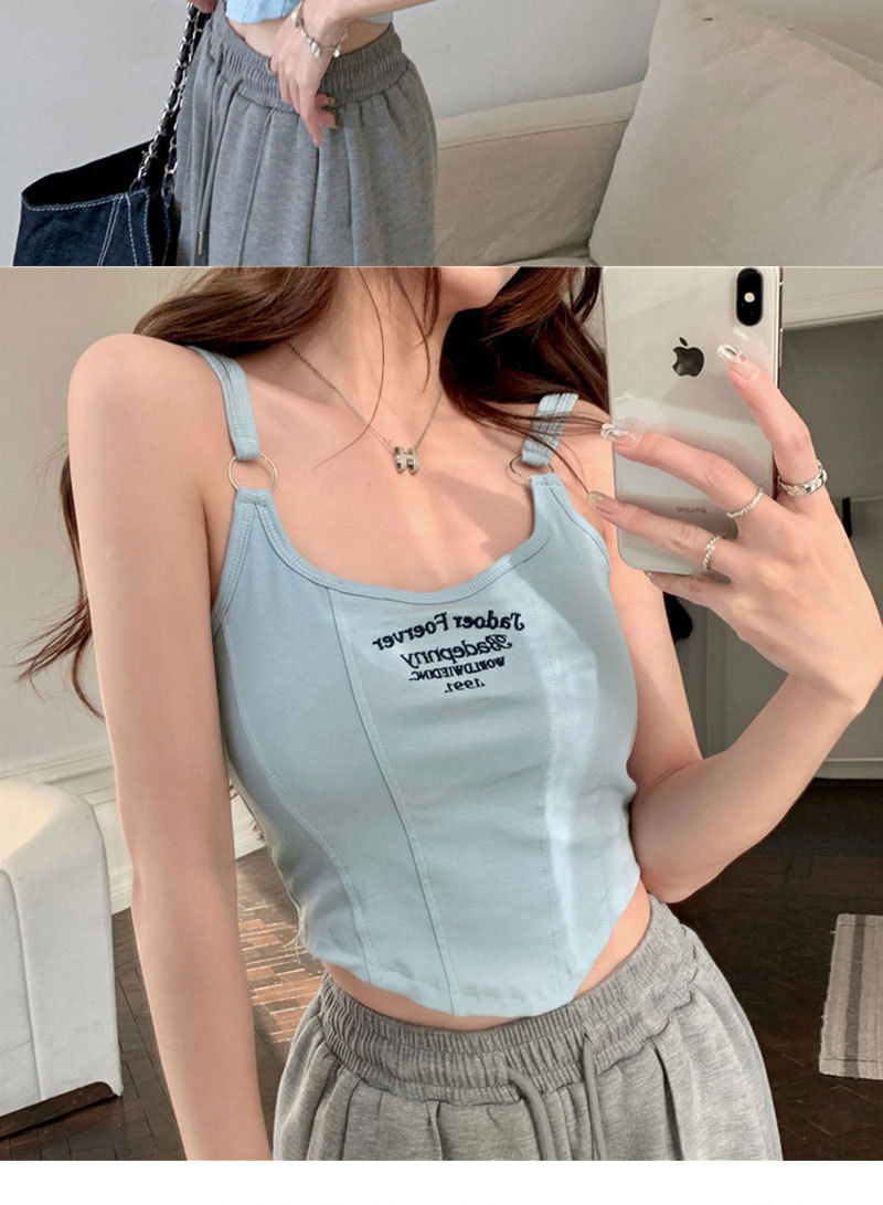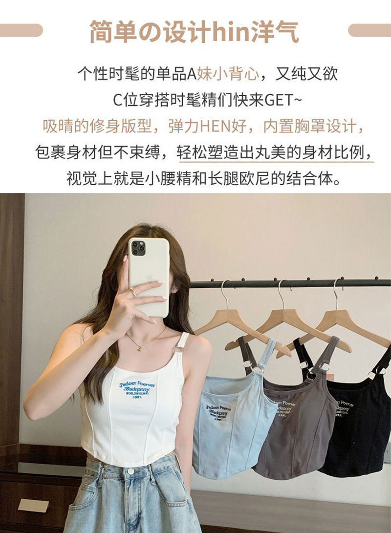 Новый интернет-знаменитость Pure Letter Sling Beauty Back Vest Цельный фиксированный жилет с запахом для чашки на груди Верхняя одежда База Короткий Топ