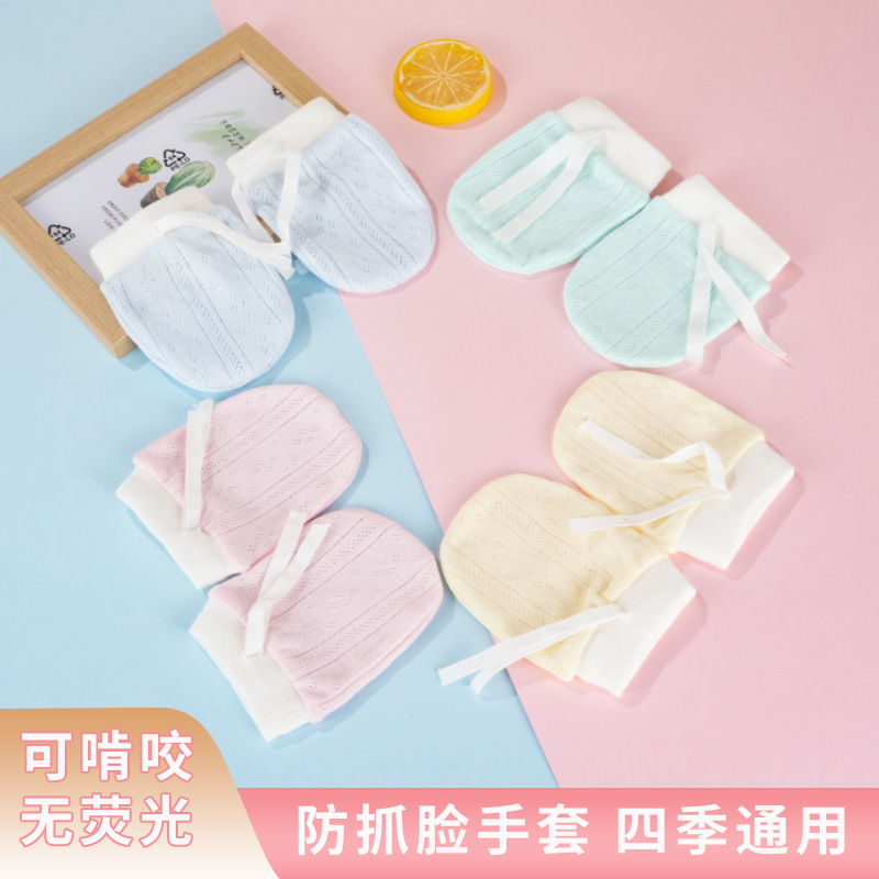 Детские хлопковые перчатки с защитой от царапин 0-12 месяцев Детские дышащие легкие защитные перчатки Тонкие перчатки с защитой от укусов новорожденных