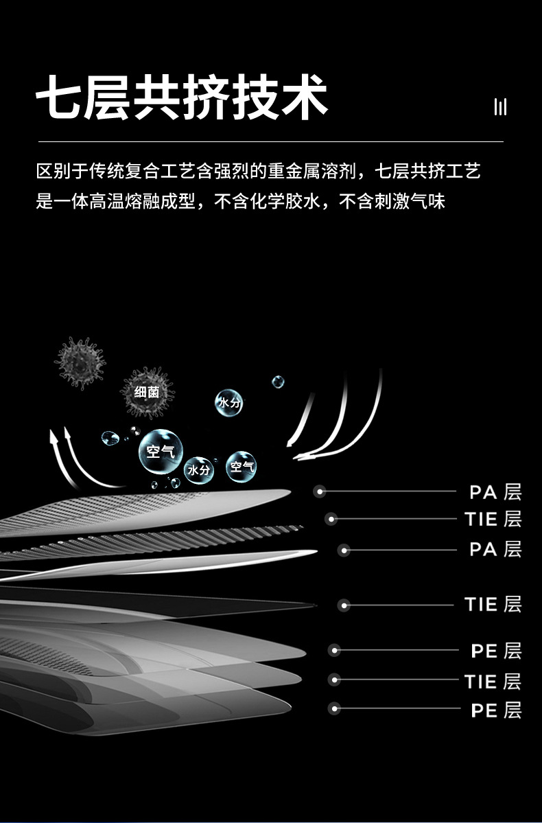 Вакуумный пакет из нейлона PA+PE, семислойный, соэкструдированный, для пищевых продуктов, трехшовный, 19/24 нитей, от производителя