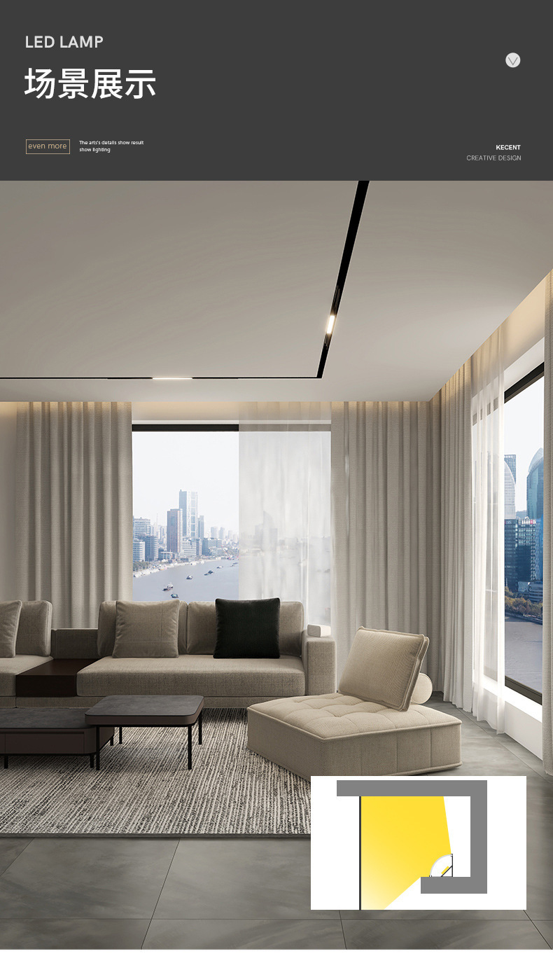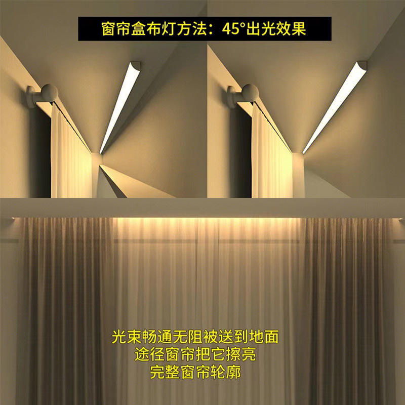Подвесной потолочный светоотражающий светильник, наклонный светящийся светильник с занавеской под углом 45 градусов с открытой настенной шайбой, Прямоугольный Светодиодный линейный светильник