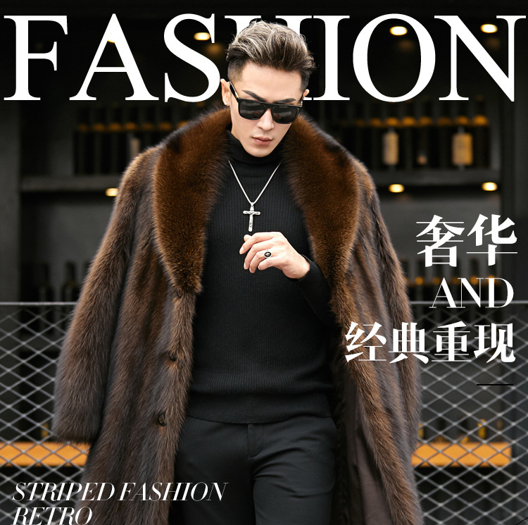 Американская норка имитирует кожаное пальто мужская имитация рыбной норки мужская норка повседневная деловая кожа длинная норковая мех теплая