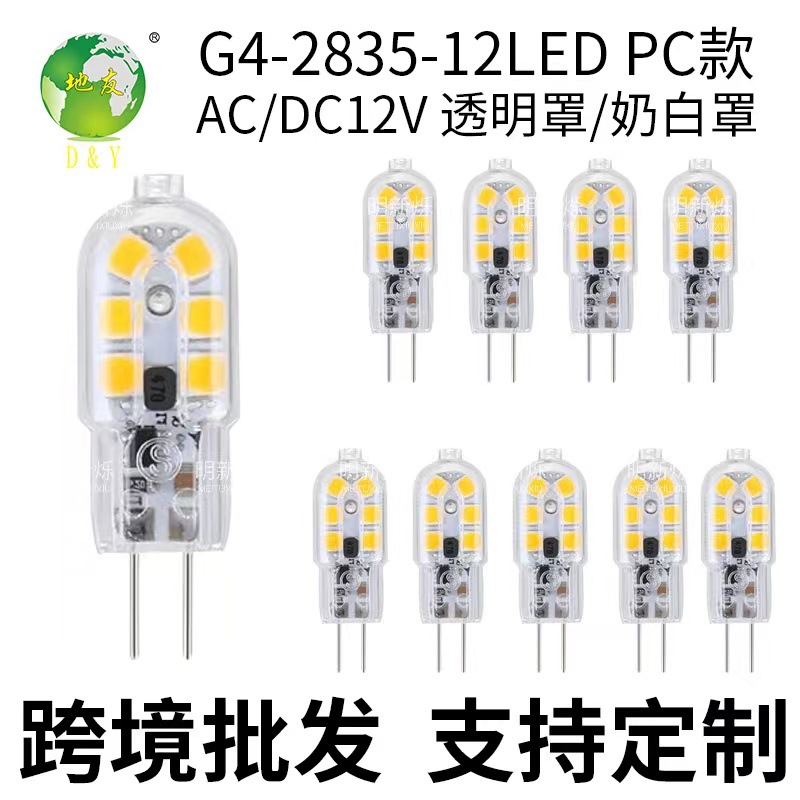 Светодиодные лампы G4 для трансграничной торговли, низковольтные AC/DC 12В, двухконтактные, с прозрачным матово-белым рассеивателем из поликарбоната, в форме горошины, для освещения типа «кукуруза»