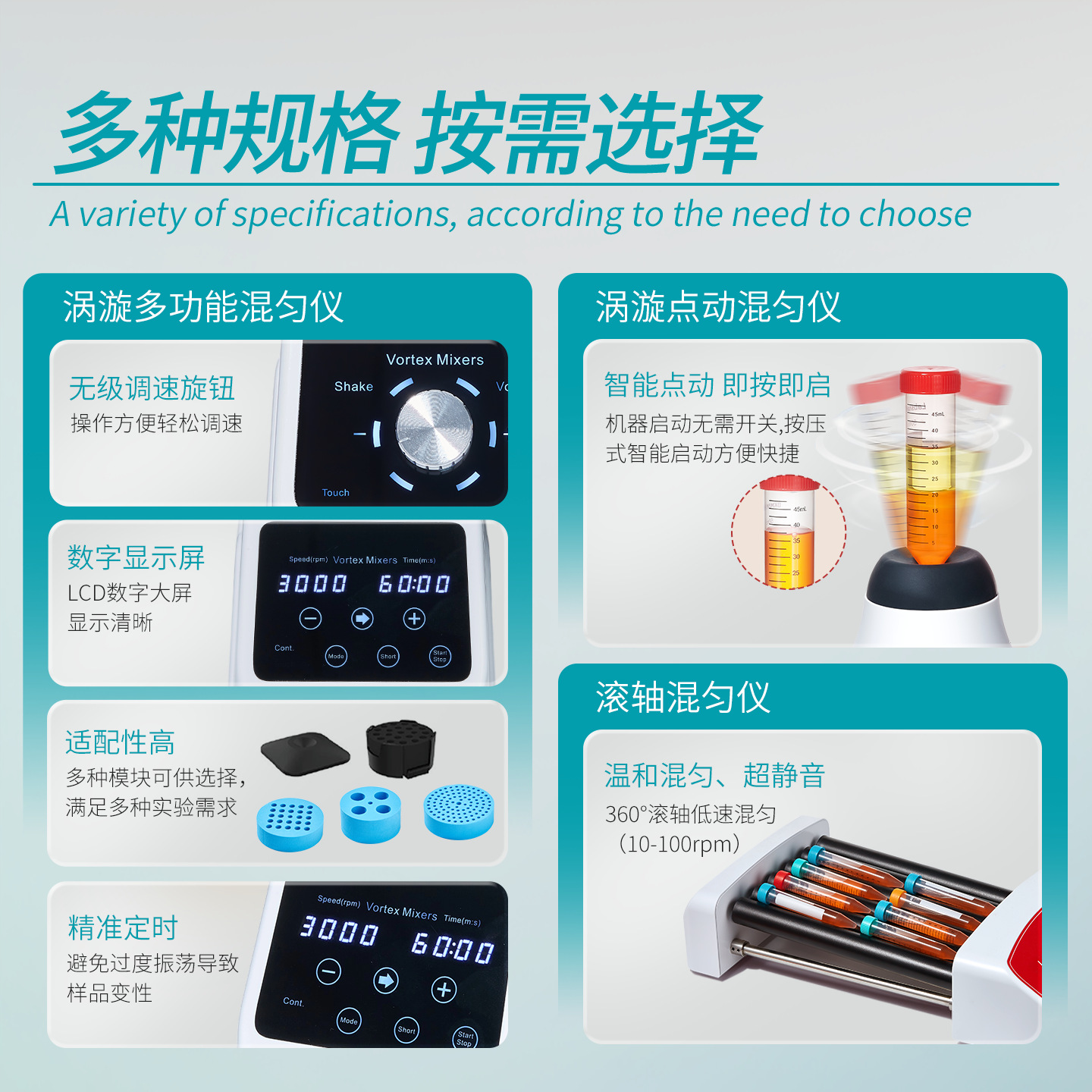 【Labshark】Смеситель LHYY-D36 130902001; 【Labshark】Ручка миксера LHYY-100A 130902002; 【Labshark】Микшер с цифровым дисплеем LHYY-100 130902003; 【BKMAMLAB】Миксер VM-3A, 12 Вт, с фиксированной скоростью, 1 комплект 110811001; [Labshark] VM-3C 20 Вт микшер с регулятором скорости 1 комплект 130902016; [Labshark] VM-3D 20 Вт ШИМ-микшер с электронной скоростью и цифровым дисплеем, 1 комплект 130902017; 【Labshark】Роликовый миксер LRB-M6 (базовая модель) 130902018; 【Labshark】Роликовый миксер LRB-M6PRO (модель с цифровым дисплеем) 130902019; Диаметр отверстия пенопластового модуля HS-C 9,8 мм*24 1 шт. 130902006; Диаметр отверстия пенопластового модуля HS-D 5 мм*96 1 шт. 130902007; Пенопластовый модуль HS-F, диаметр отверстия 14 мм*8, 1 шт. 130902009; Диаметр отверстия пенопластового модуля HS-G 26,2 мм*4 1 шт. 130902010; HS-H Лоток для микропланшетов 1 шт. 130902011; HS-I универсальный лоток 1 шт. 130902012; Пластиковый поддон HS-J стандартный 1 шт. 130902013; Диаметр отверстия пенопластового модуля HS-K 6,6 мм*48 1 шт. 130902014