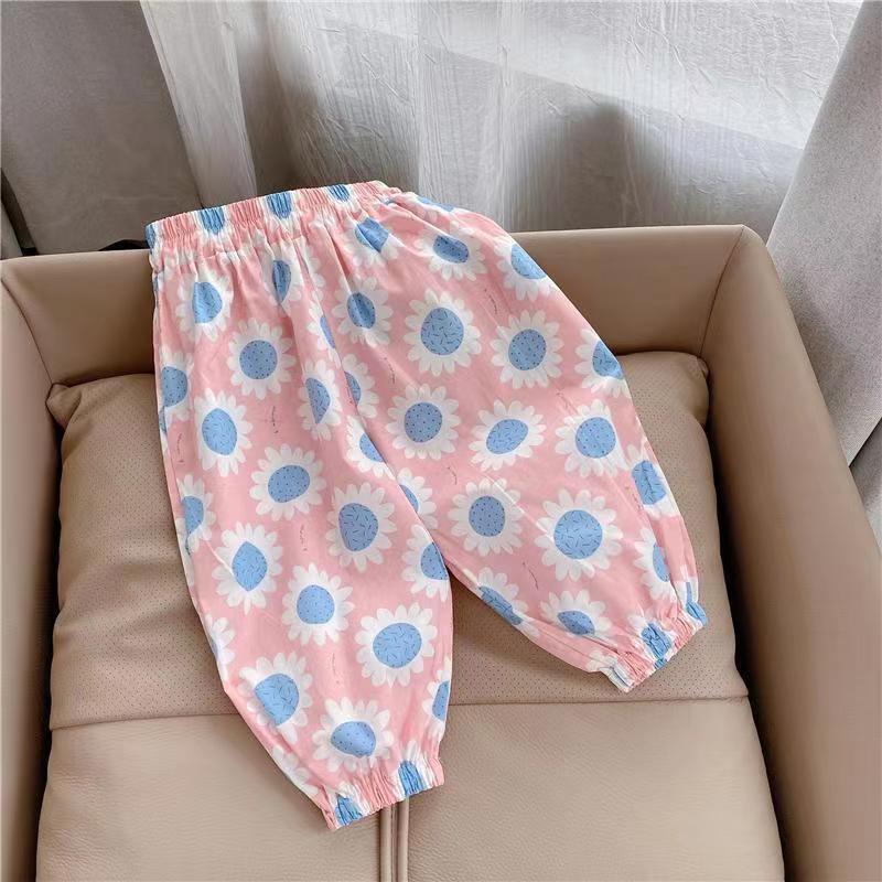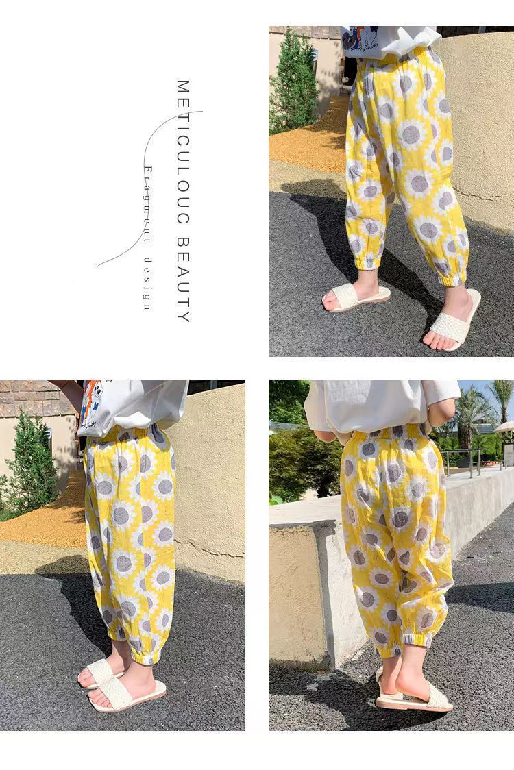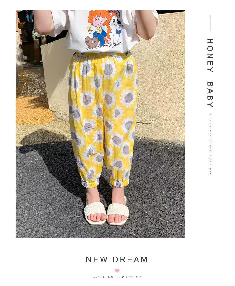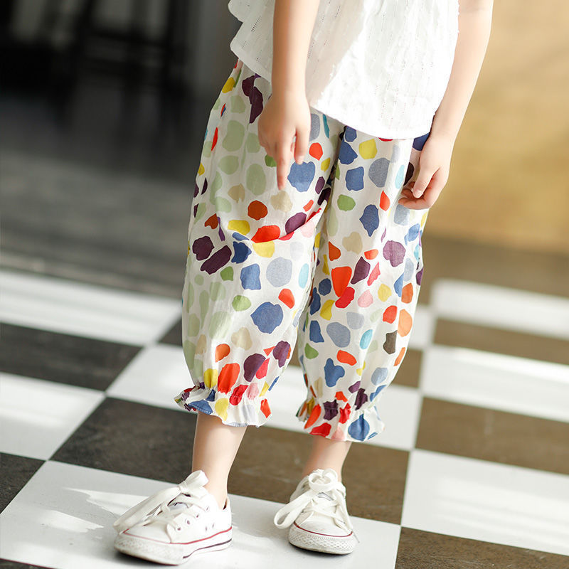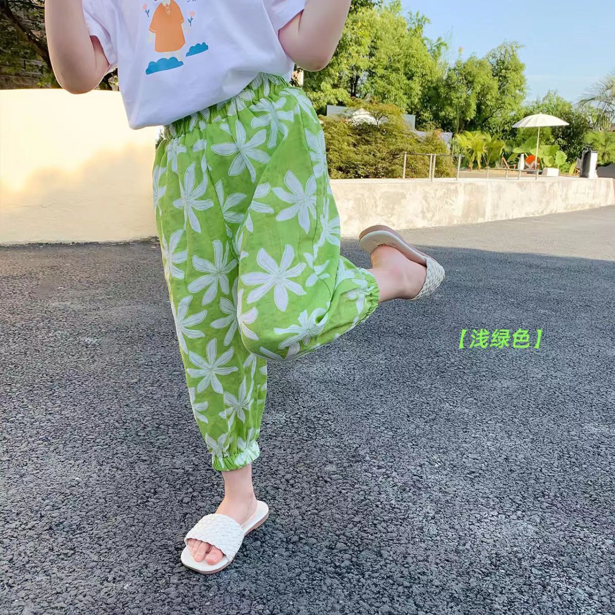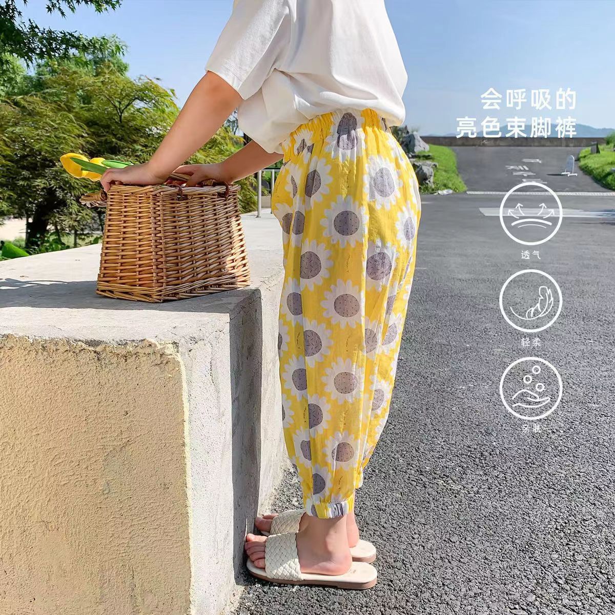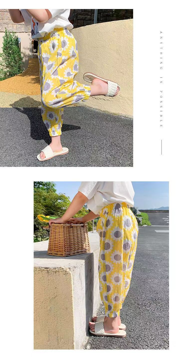 Летние корейские Детские Модные Антимоскитные брюки с принтом, повседневные тканые брюки до щиколотки для маленьких девочек, пляжные брюки, солнцезащитные брюки