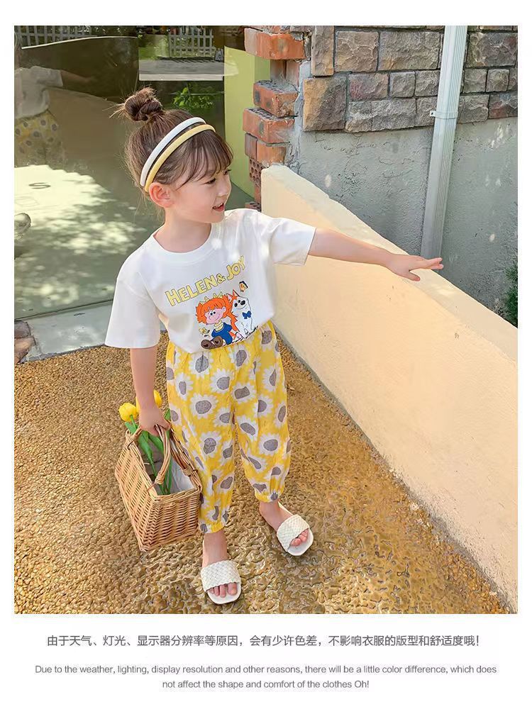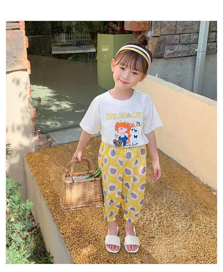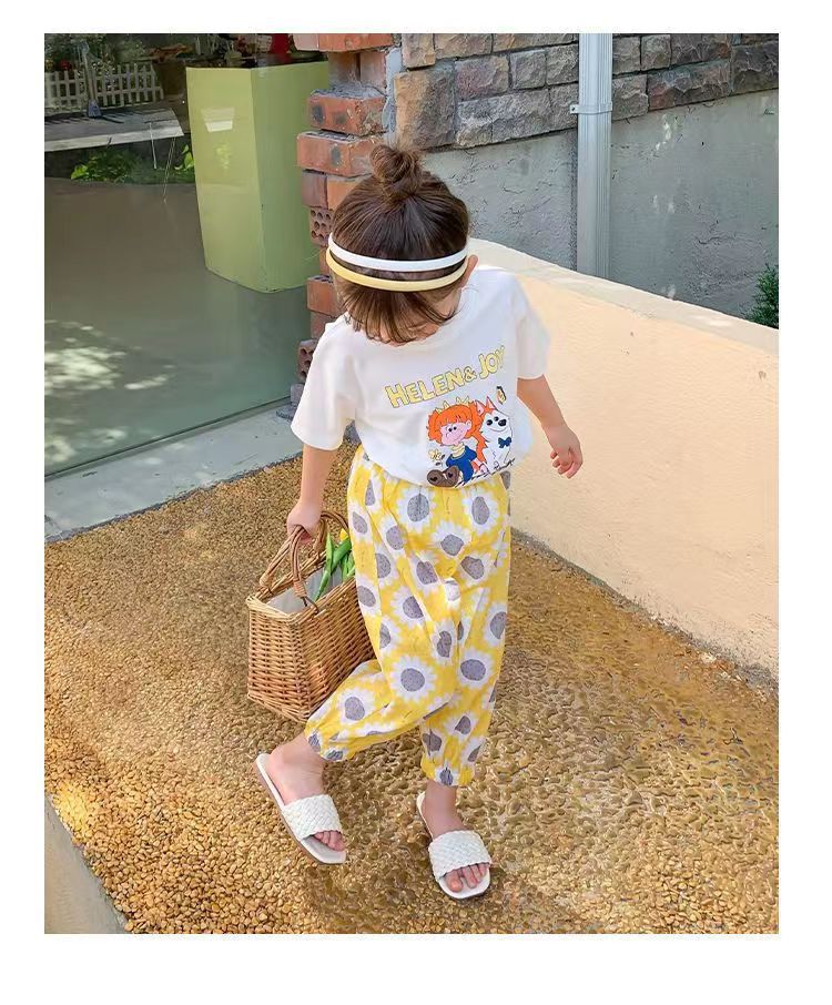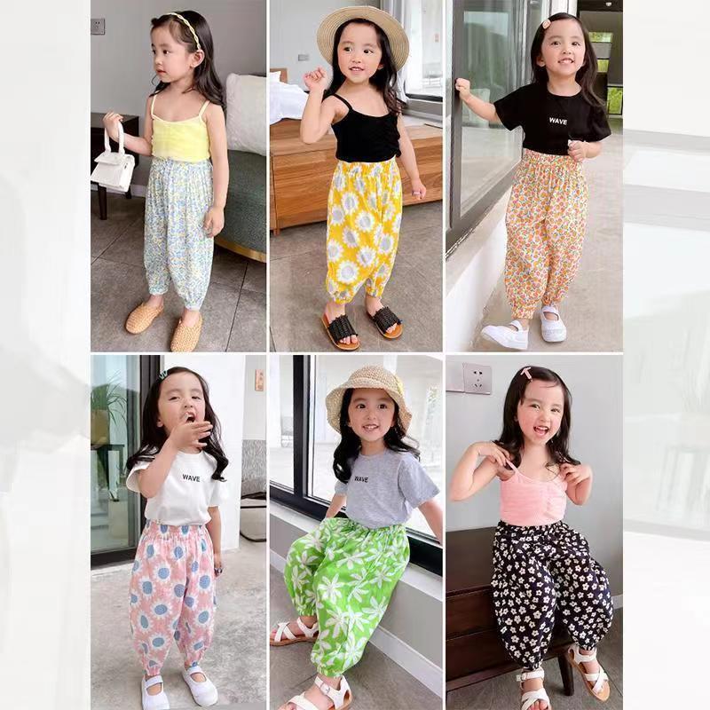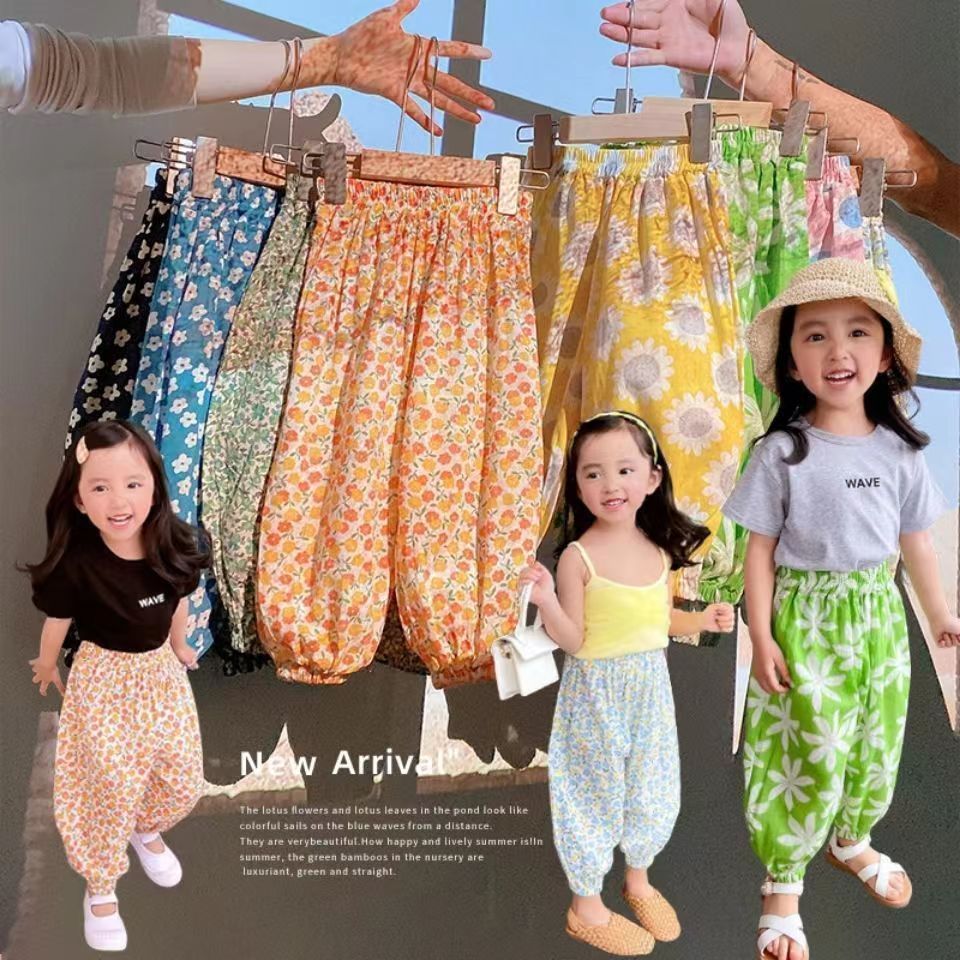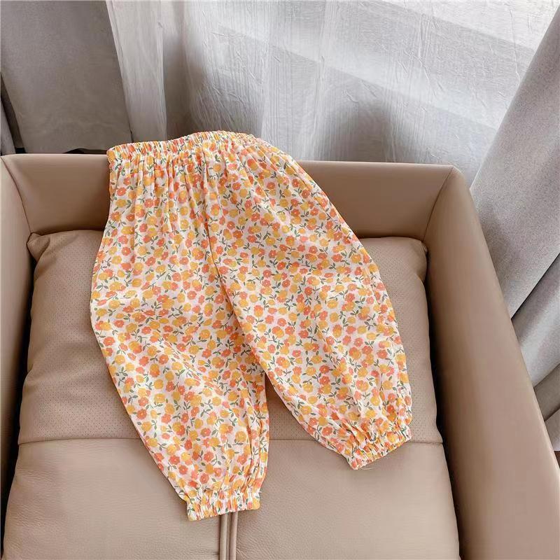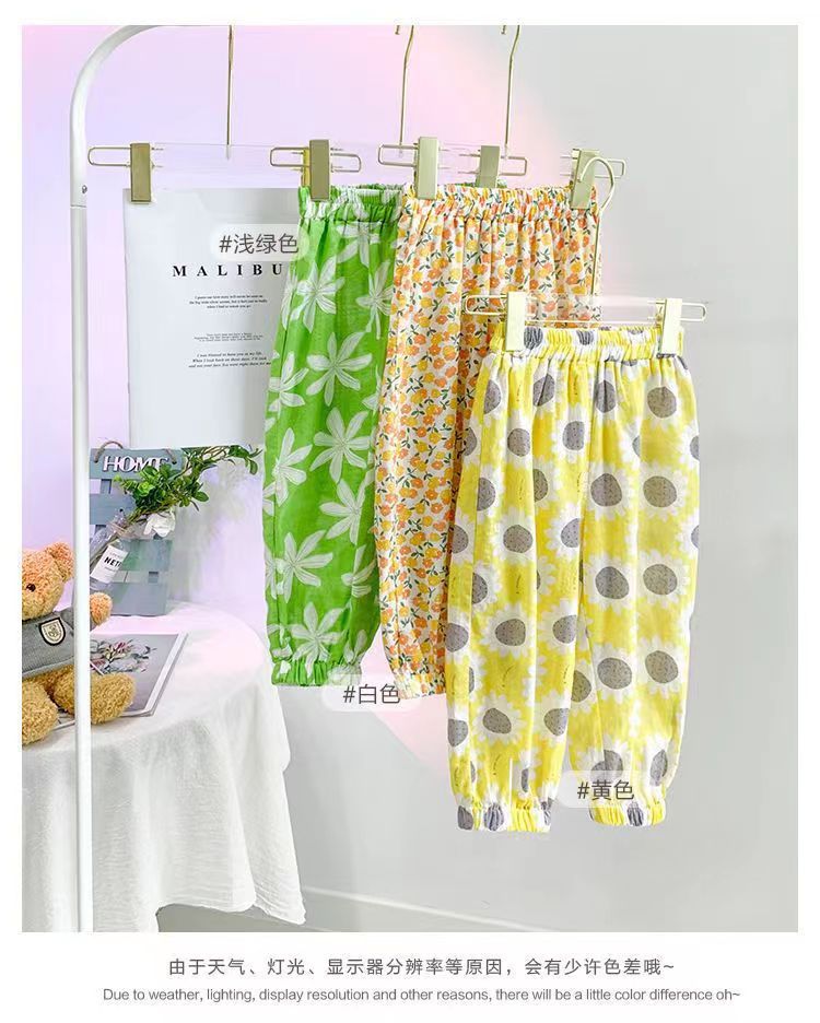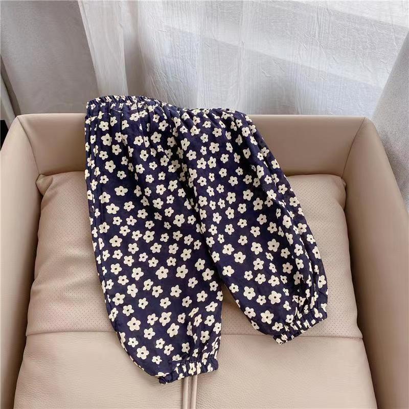 Летние корейские Детские Модные Антимоскитные брюки с принтом, повседневные тканые брюки до щиколотки для маленьких девочек, пляжные брюки, солнцезащитные брюки