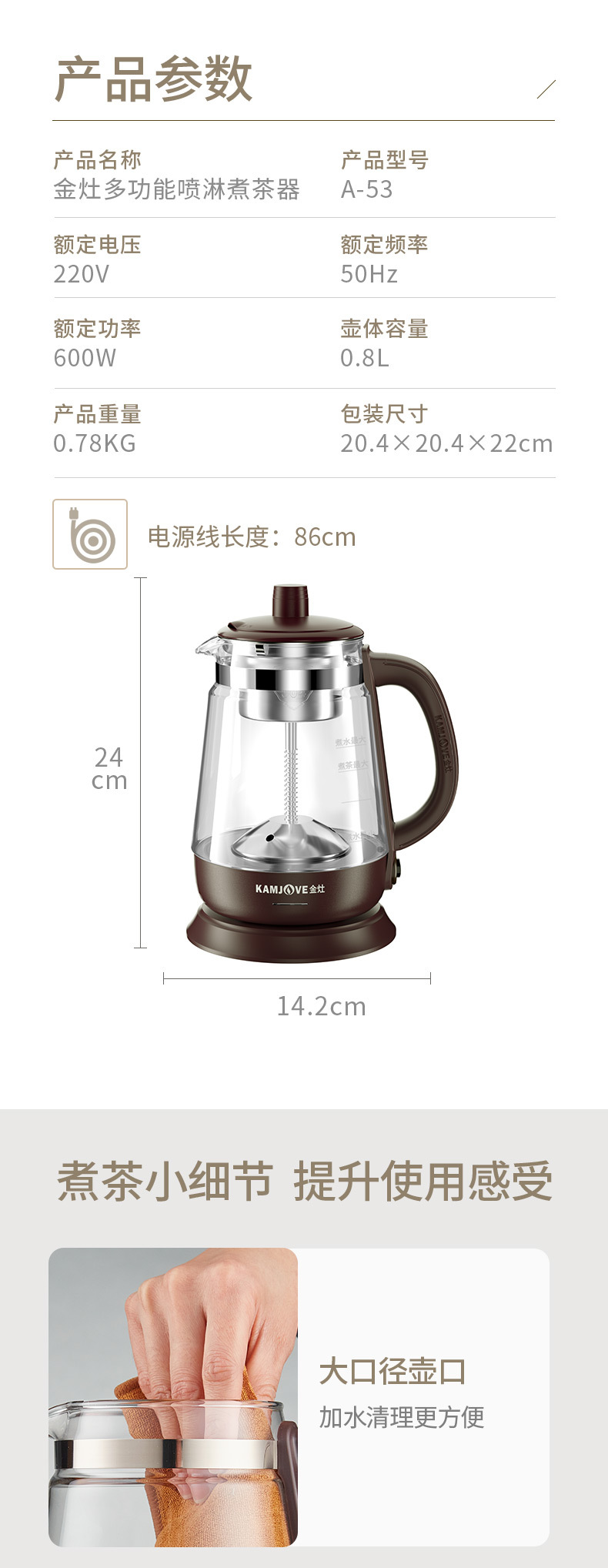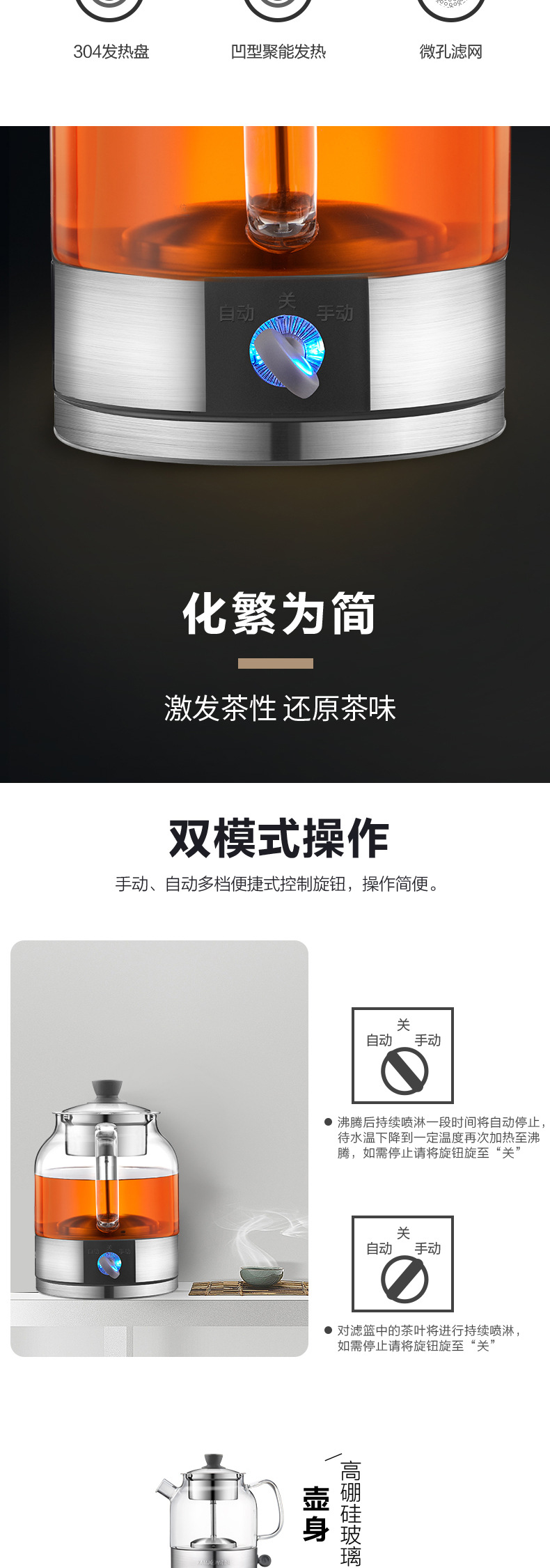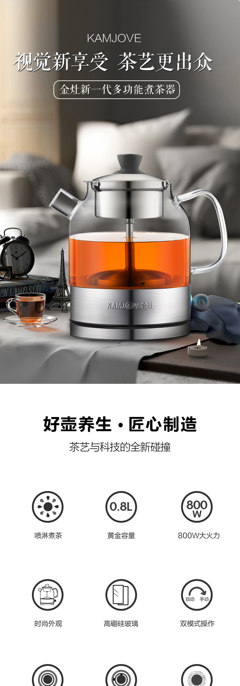 Jinzao A- 52 кипящий чай черный чай пуэр паровой автоматический стеклянный горшок здоровья изоляция электрический чайник