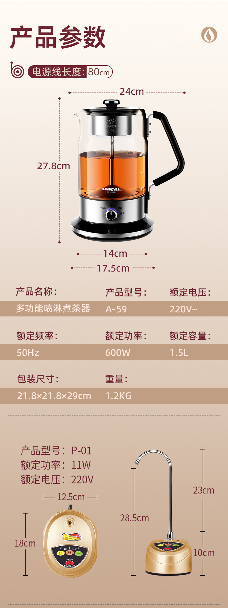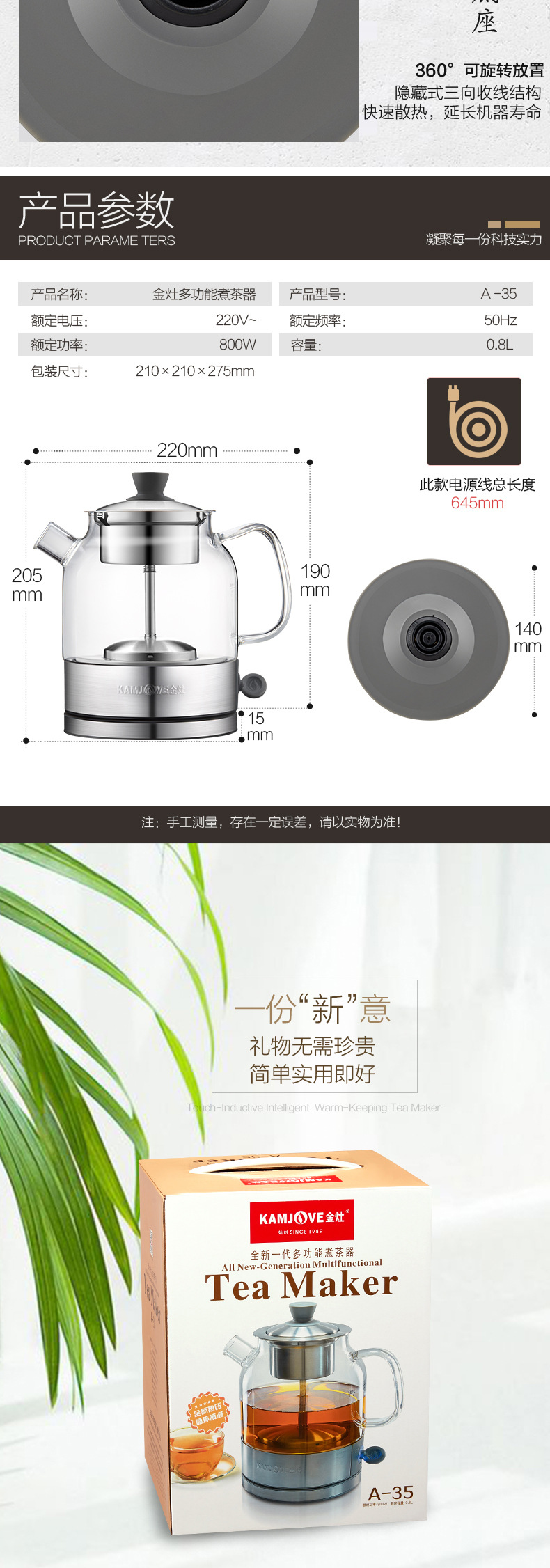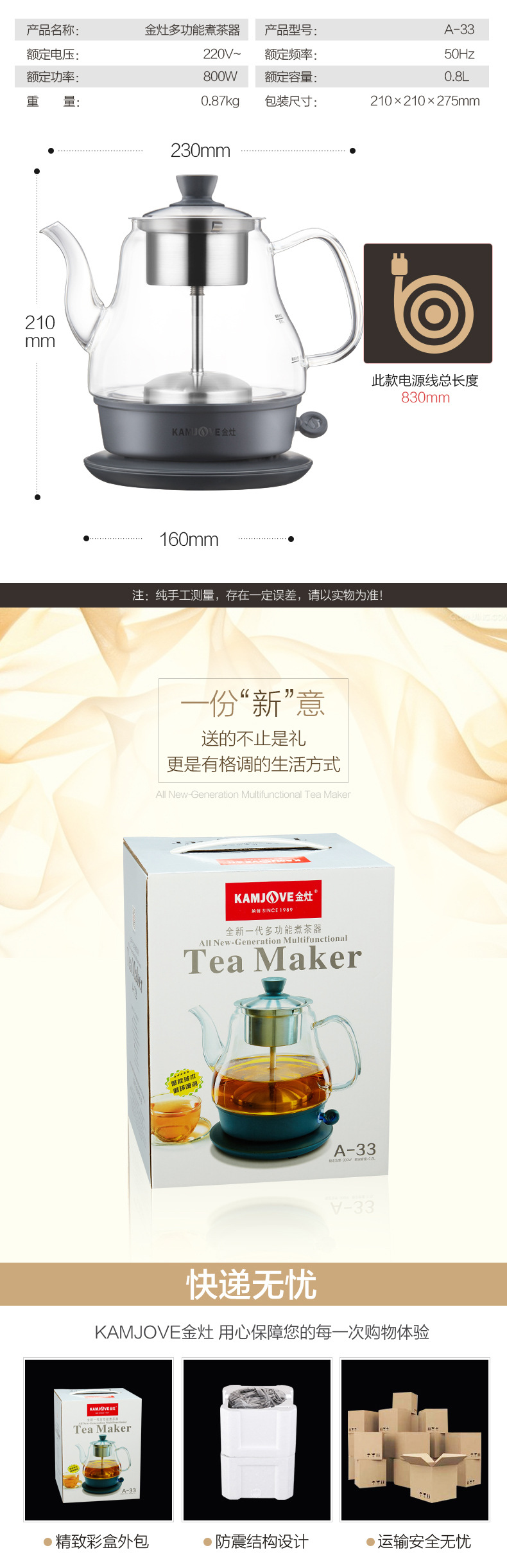 Jinzao A- 52 кипящий чай черный чай пуэр паровой автоматический стеклянный горшок здоровья изоляция электрический чайник