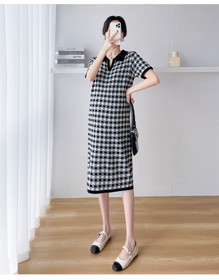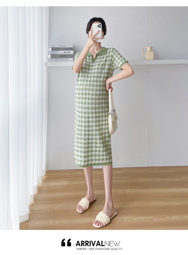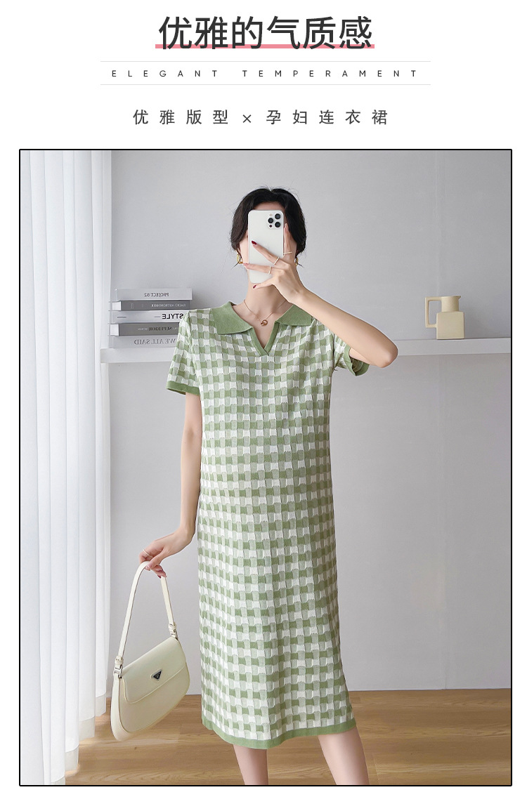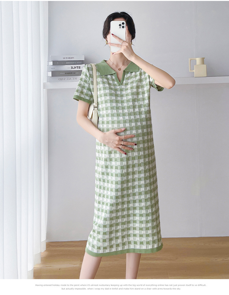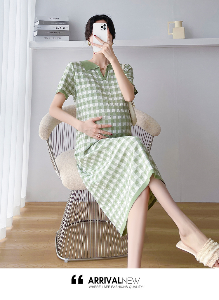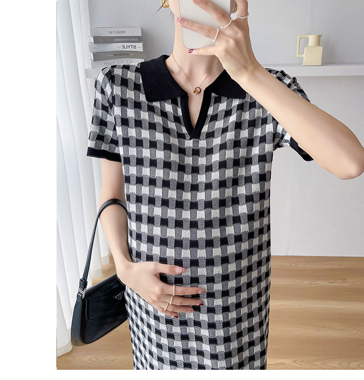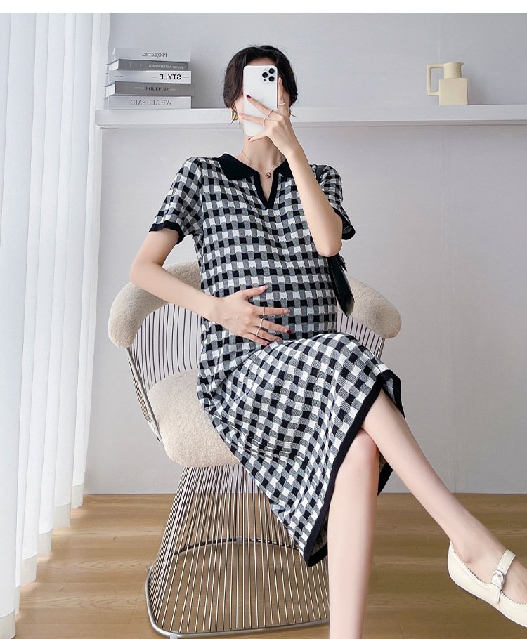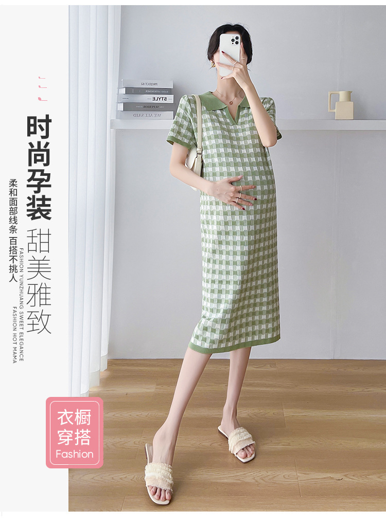 Материнство 2023 Летнее Новое Материнство плед V-образным вырезом вязаное платье для беременных кормящих