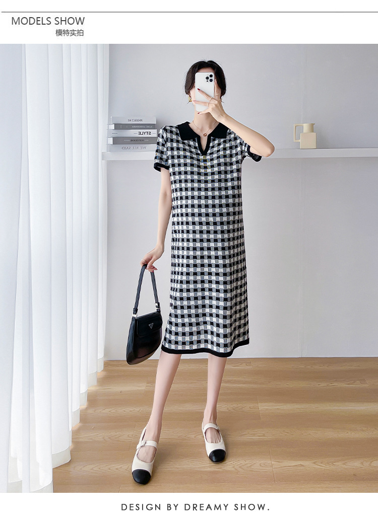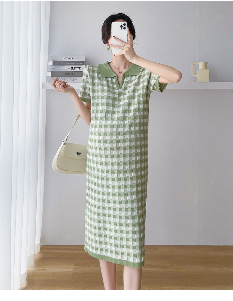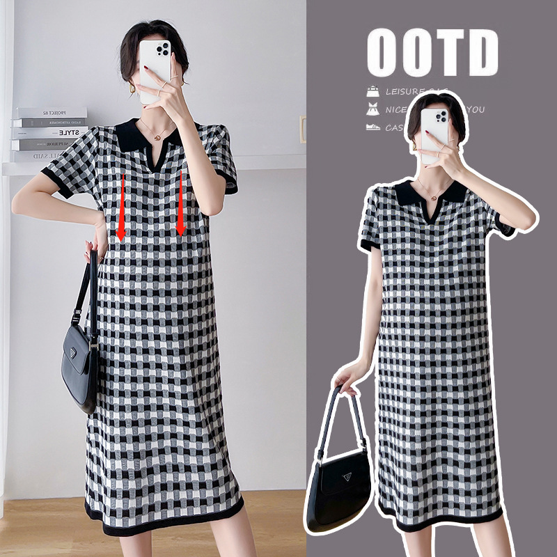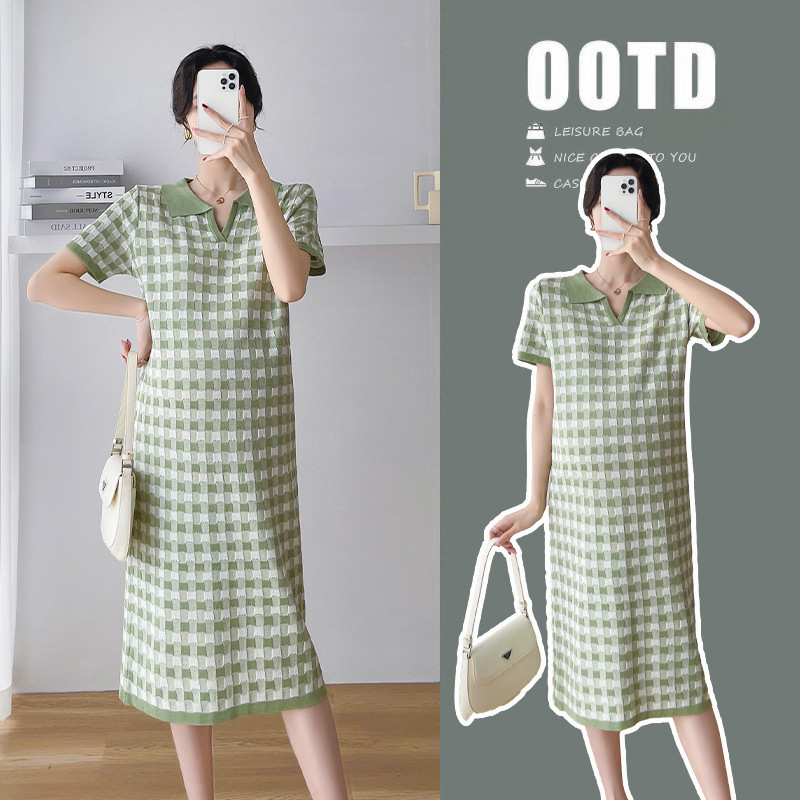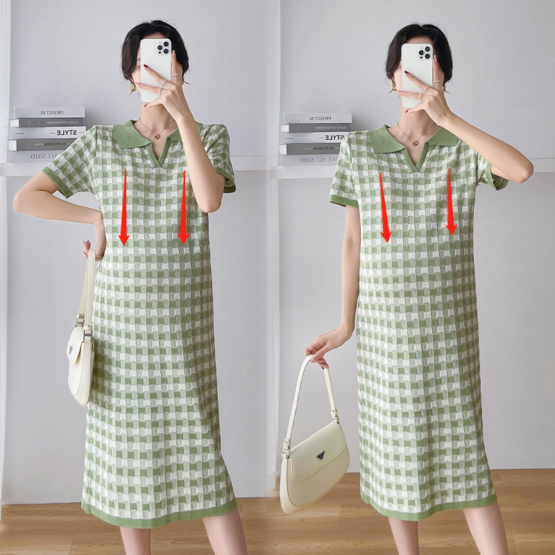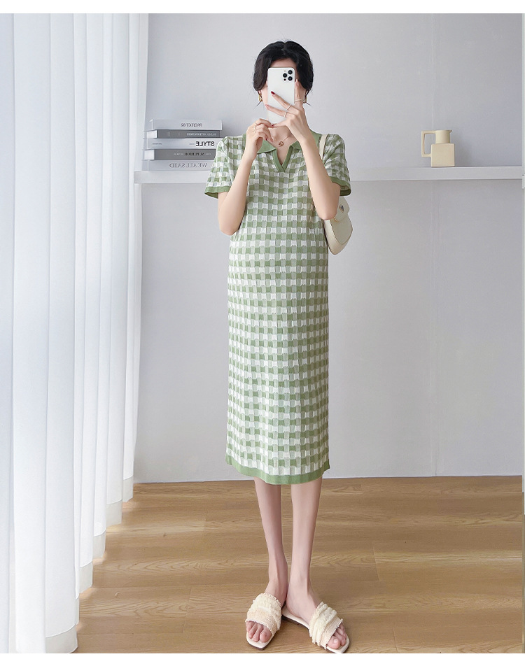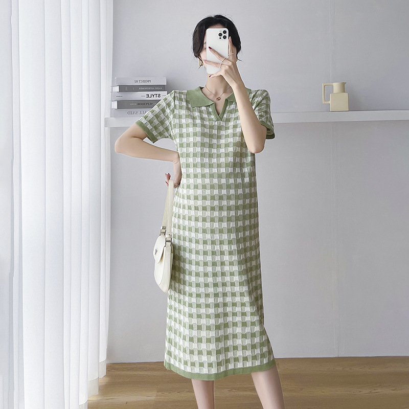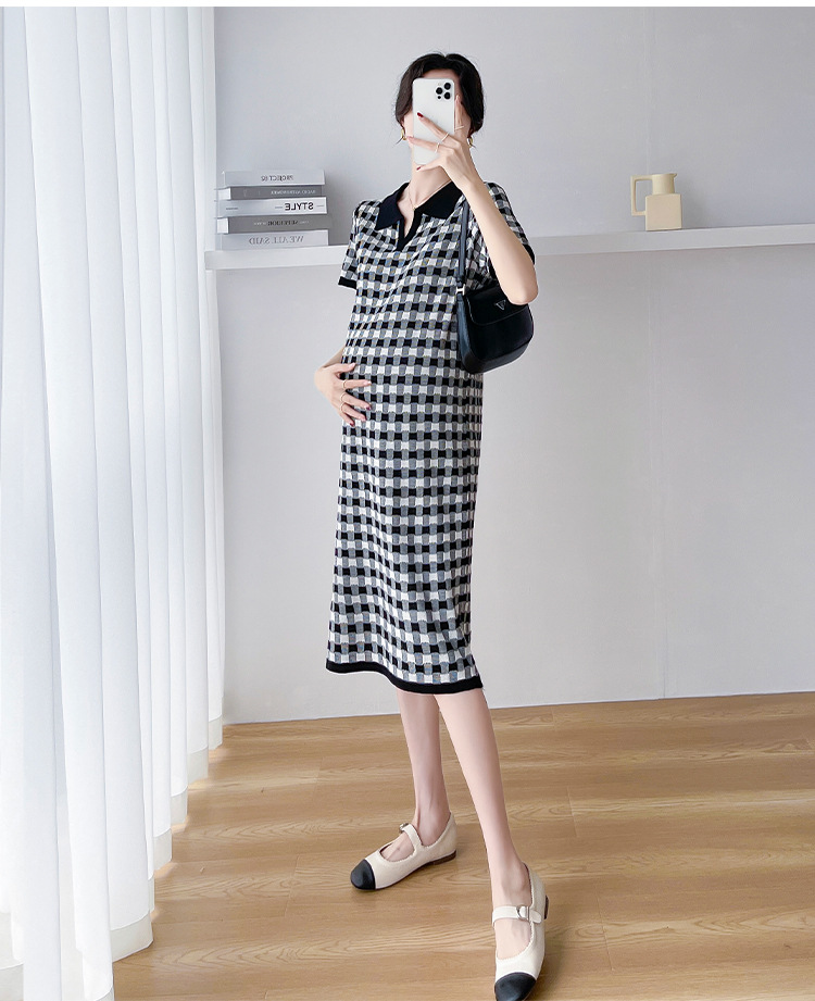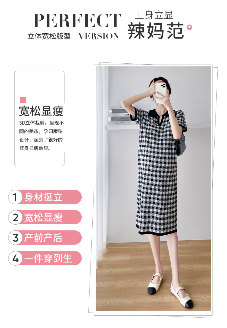 Материнство 2023 Летнее Новое Материнство плед V-образным вырезом вязаное платье для беременных кормящих