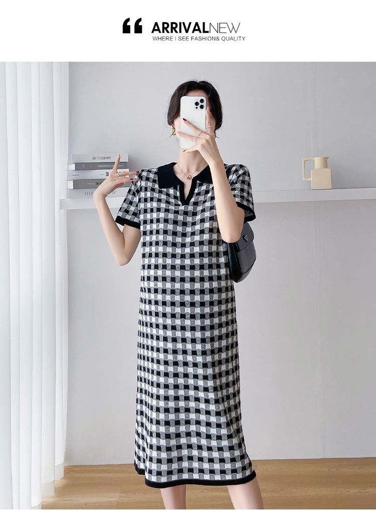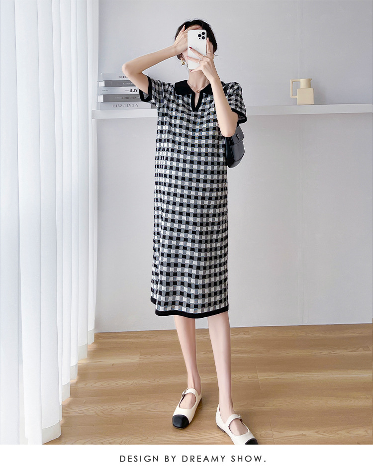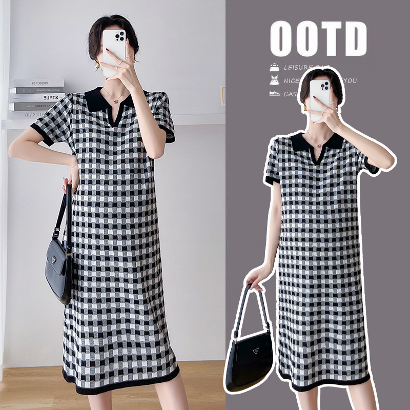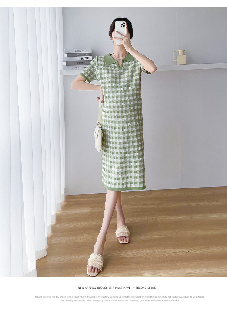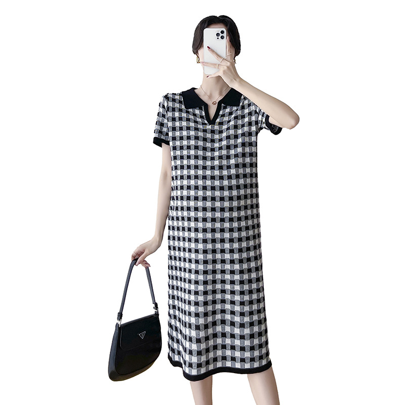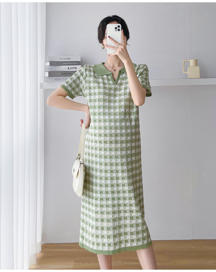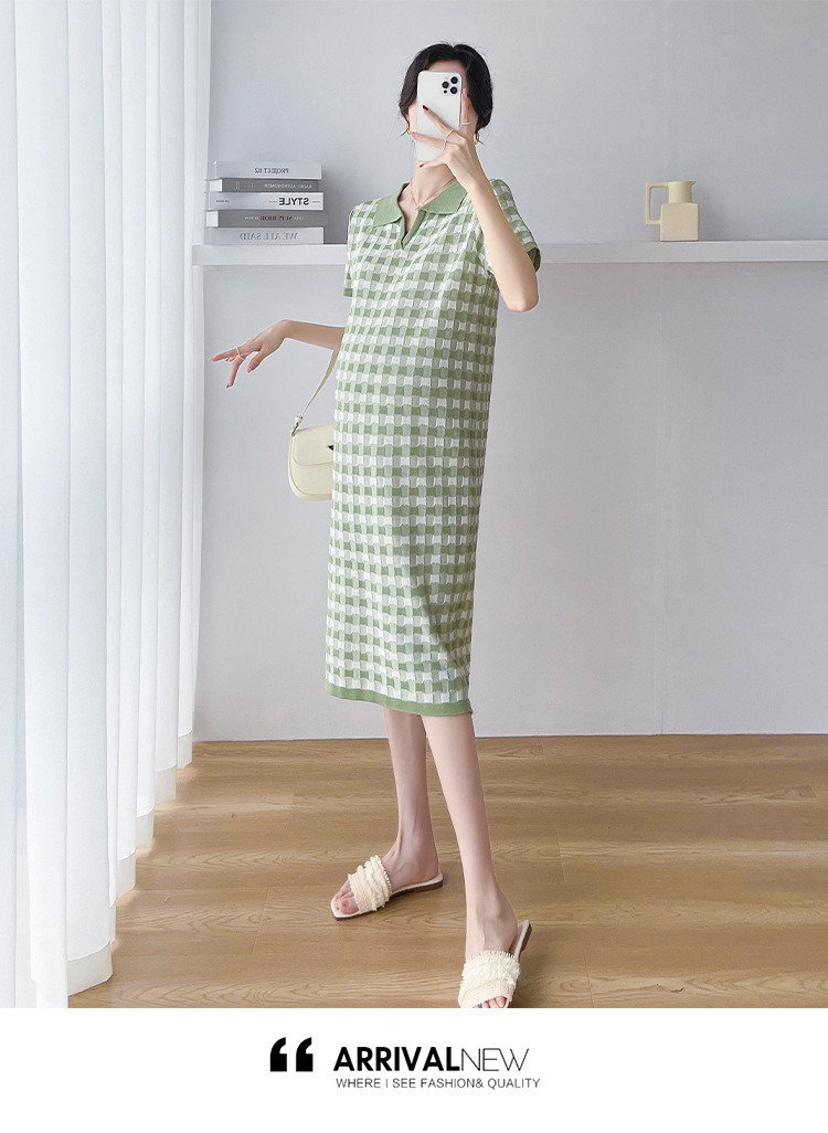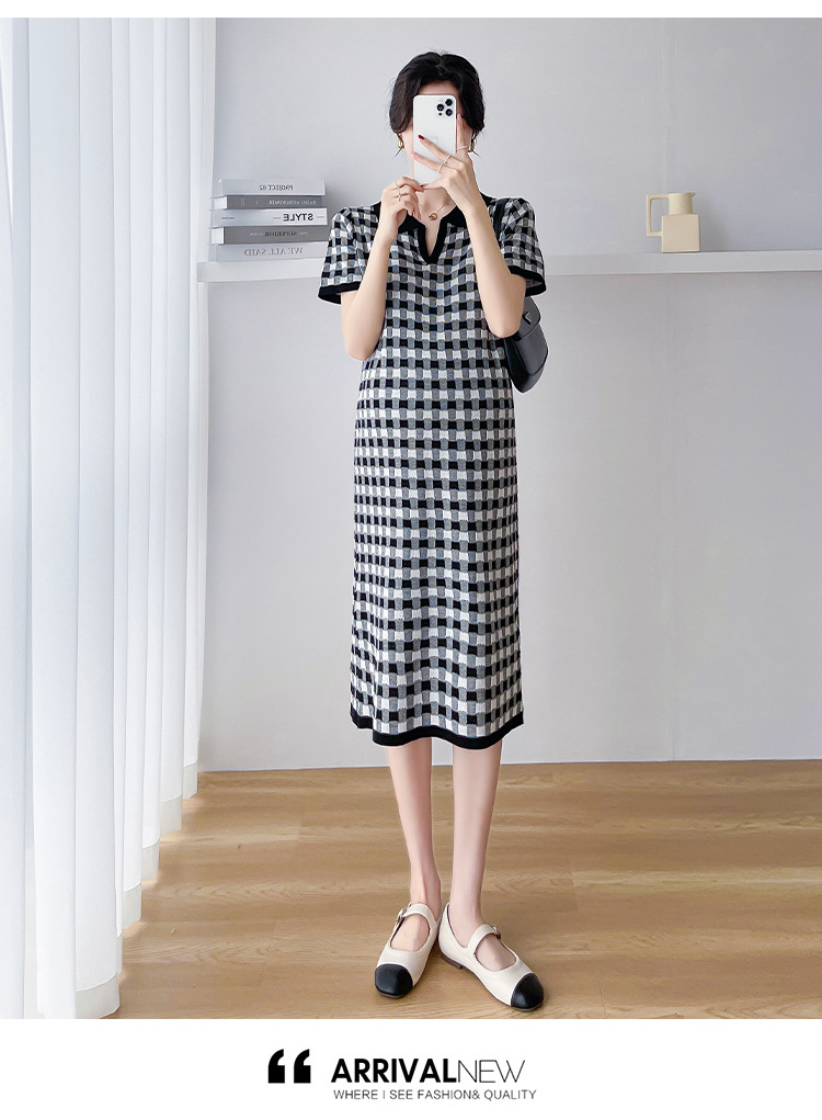 Материнство 2023 Летнее Новое Материнство плед V-образным вырезом вязаное платье для беременных кормящих