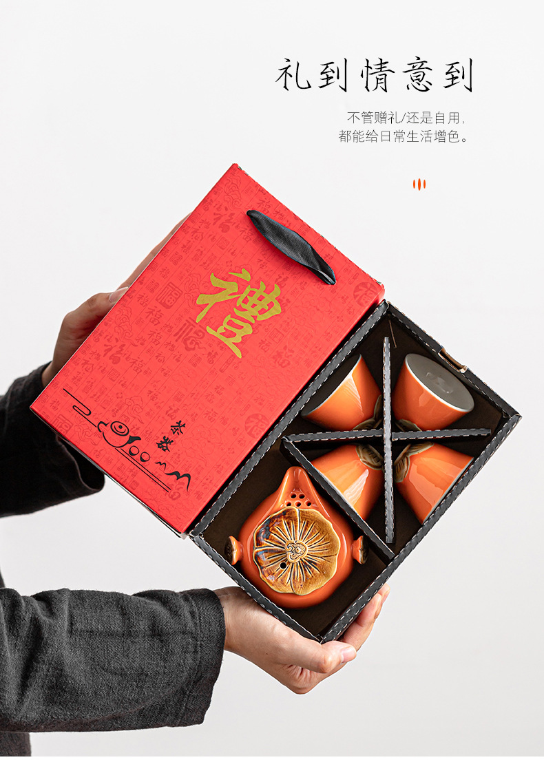 Чайный набор из хурмы; Чайник Rui; Маленький набор чайных сервизов из хурмы; Маленький набор чайного сервиза Руи