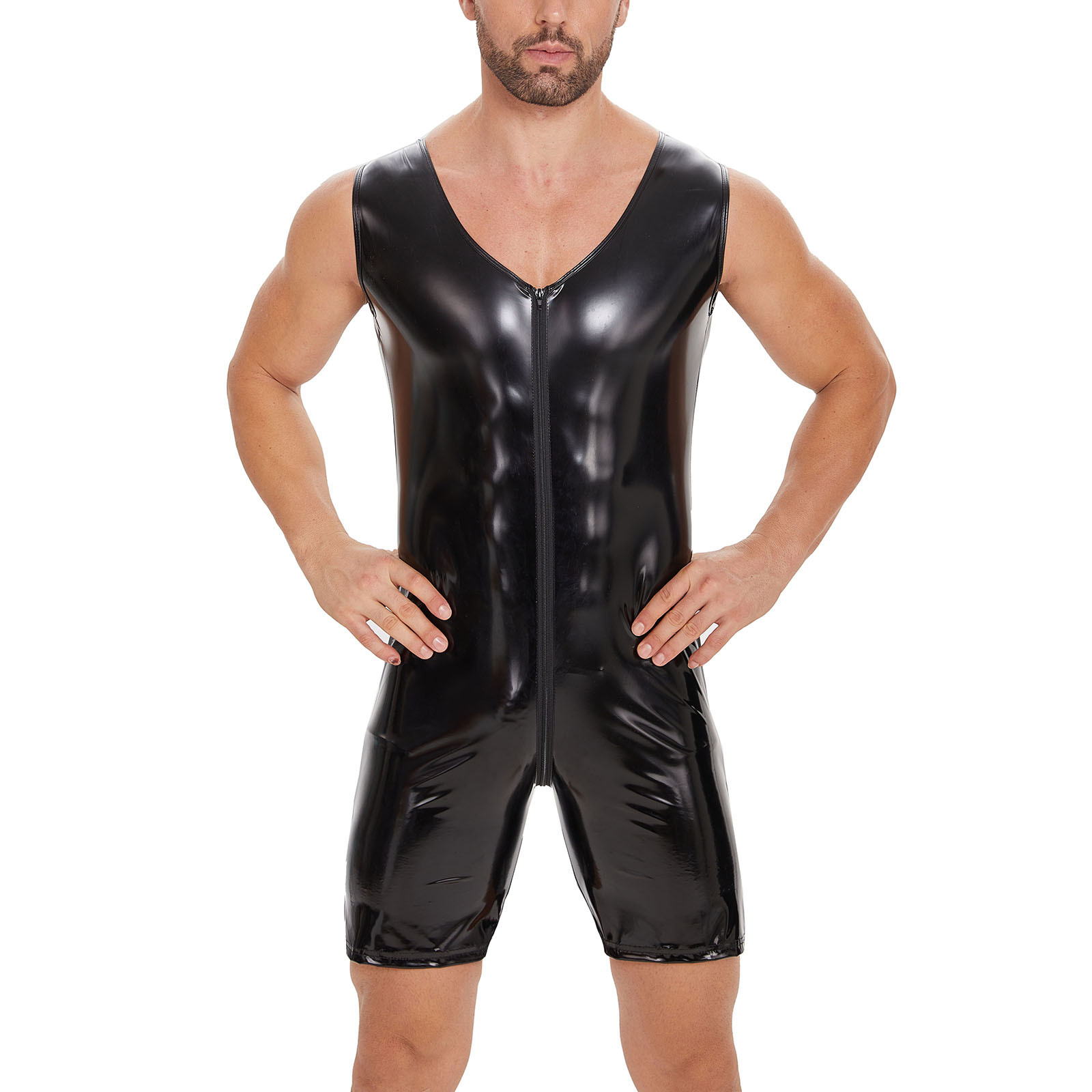 Трансграничный европейский и американский мужской зеркальный Яркий кожаный комбинезон, сексуальный открытый файл на молнии без запаха, точный размер