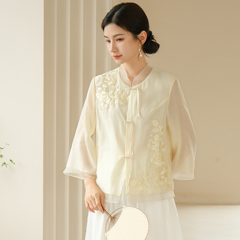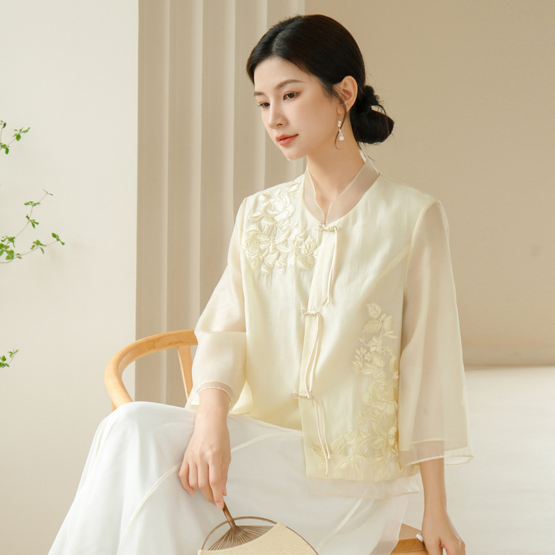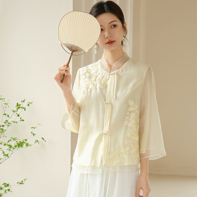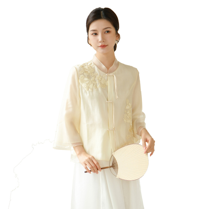 Qing Shuzhai 2023 Летняя женская одежда, новое пальто с вышивкой в китайском стиле, чайная одежда художника, топ, дзен, чайная одежда