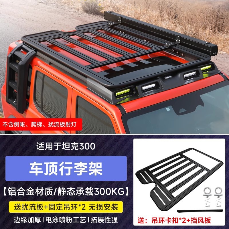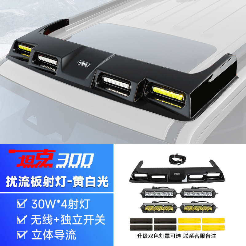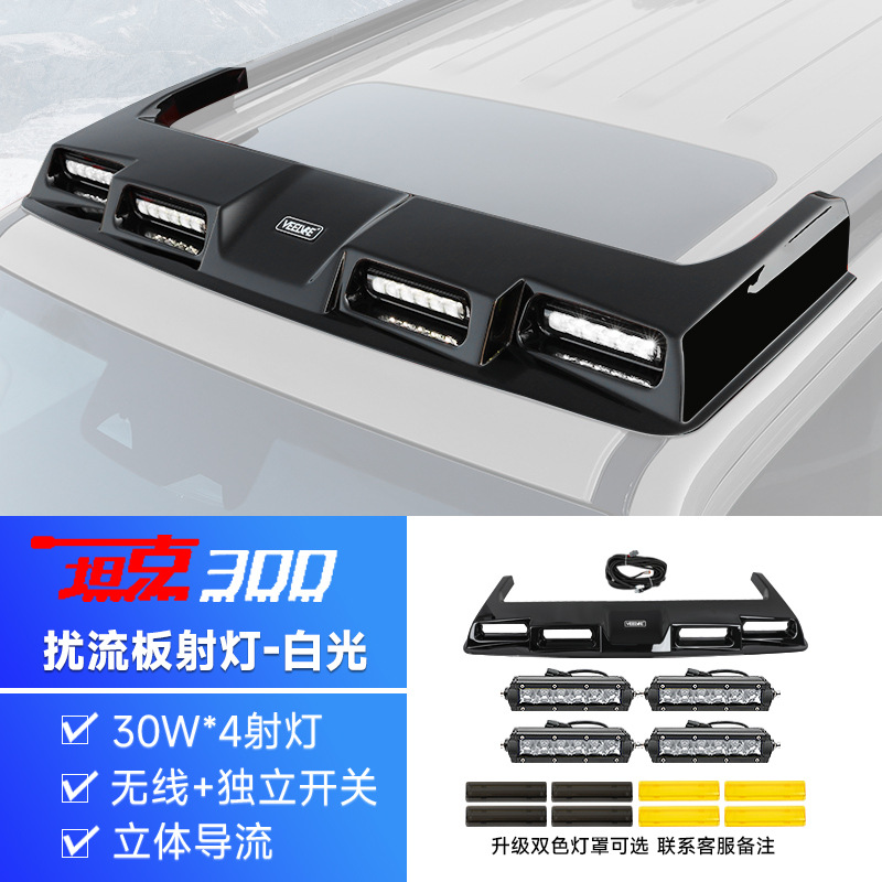 Танк 300: крышный прожектор, четырехглазый спойлер, поисковый свет, светодиодная вспышка, внедорожные аксессуары для модификации багажника и лестницы.
