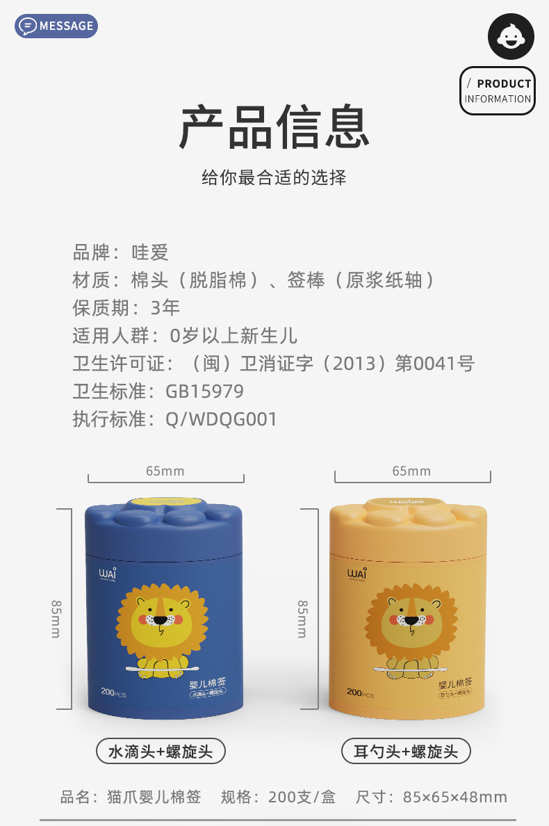 Вау люблю детский ватный тампон мелкий ватный тампон