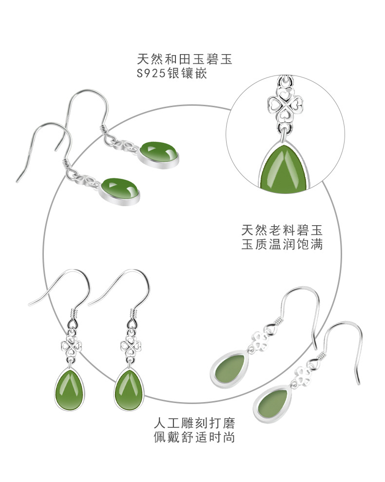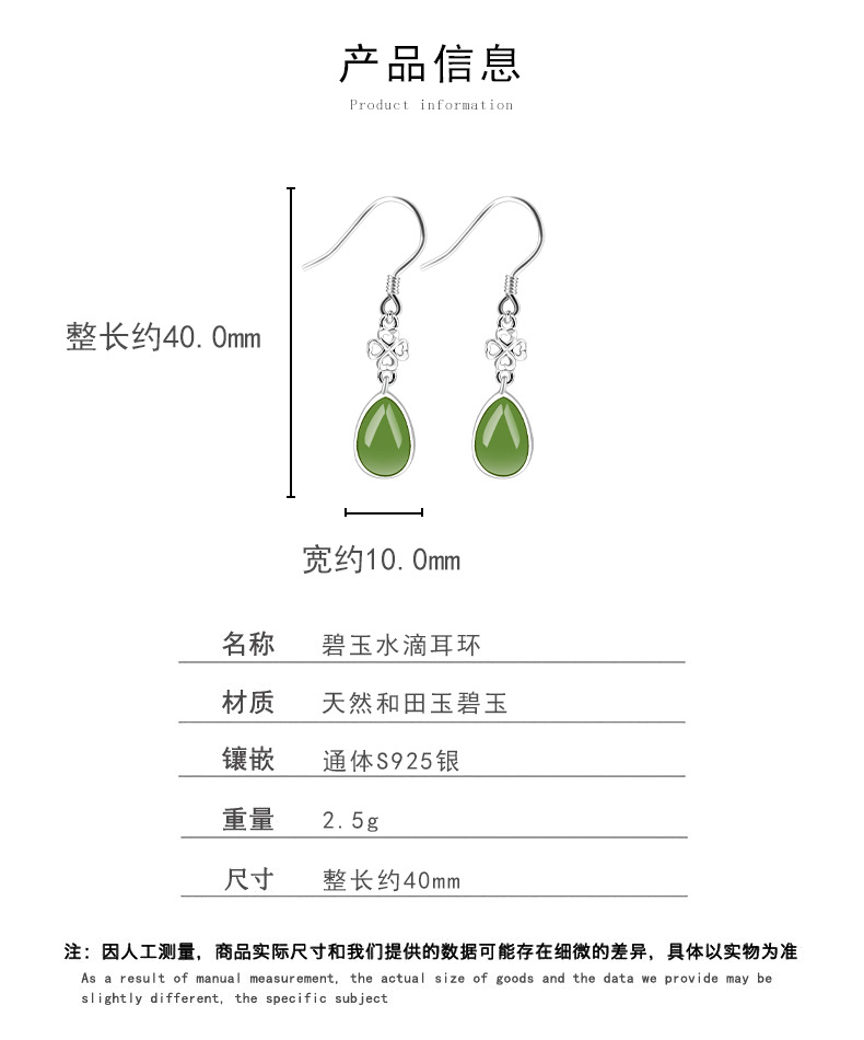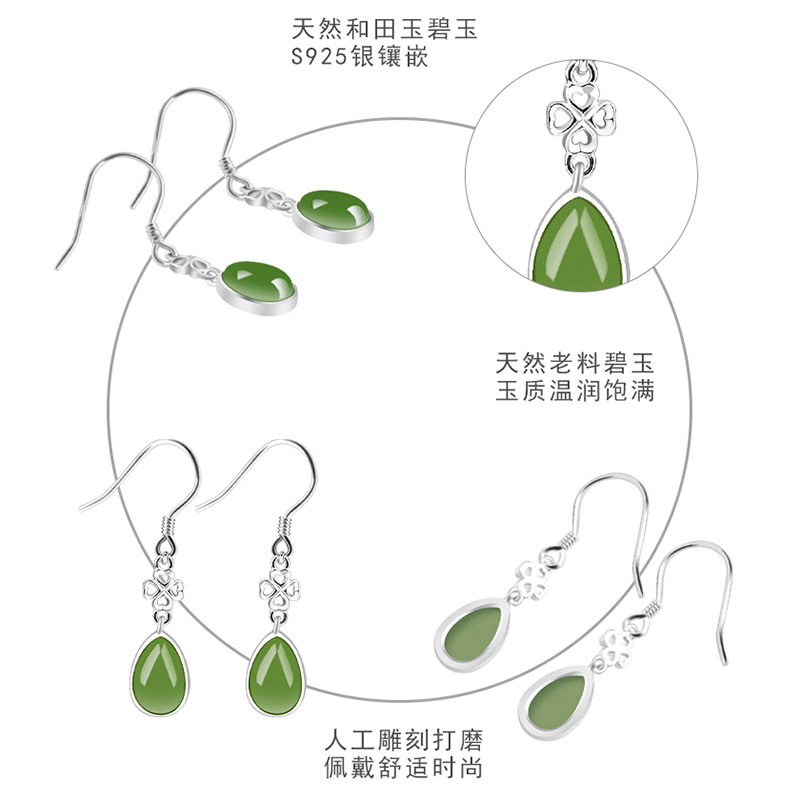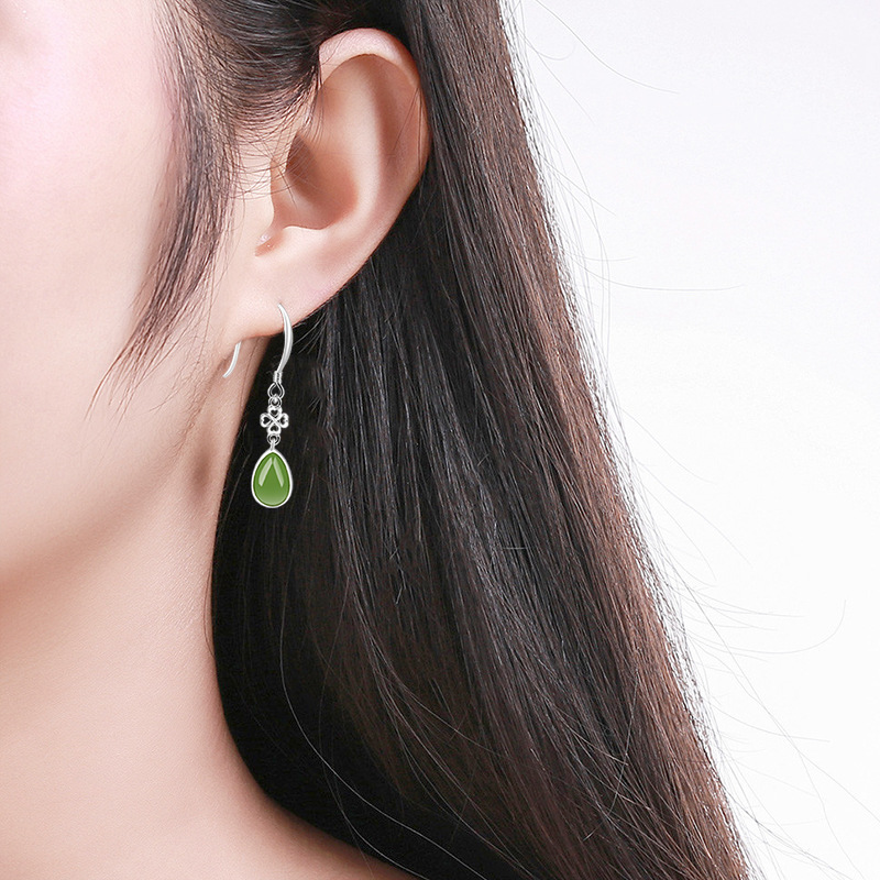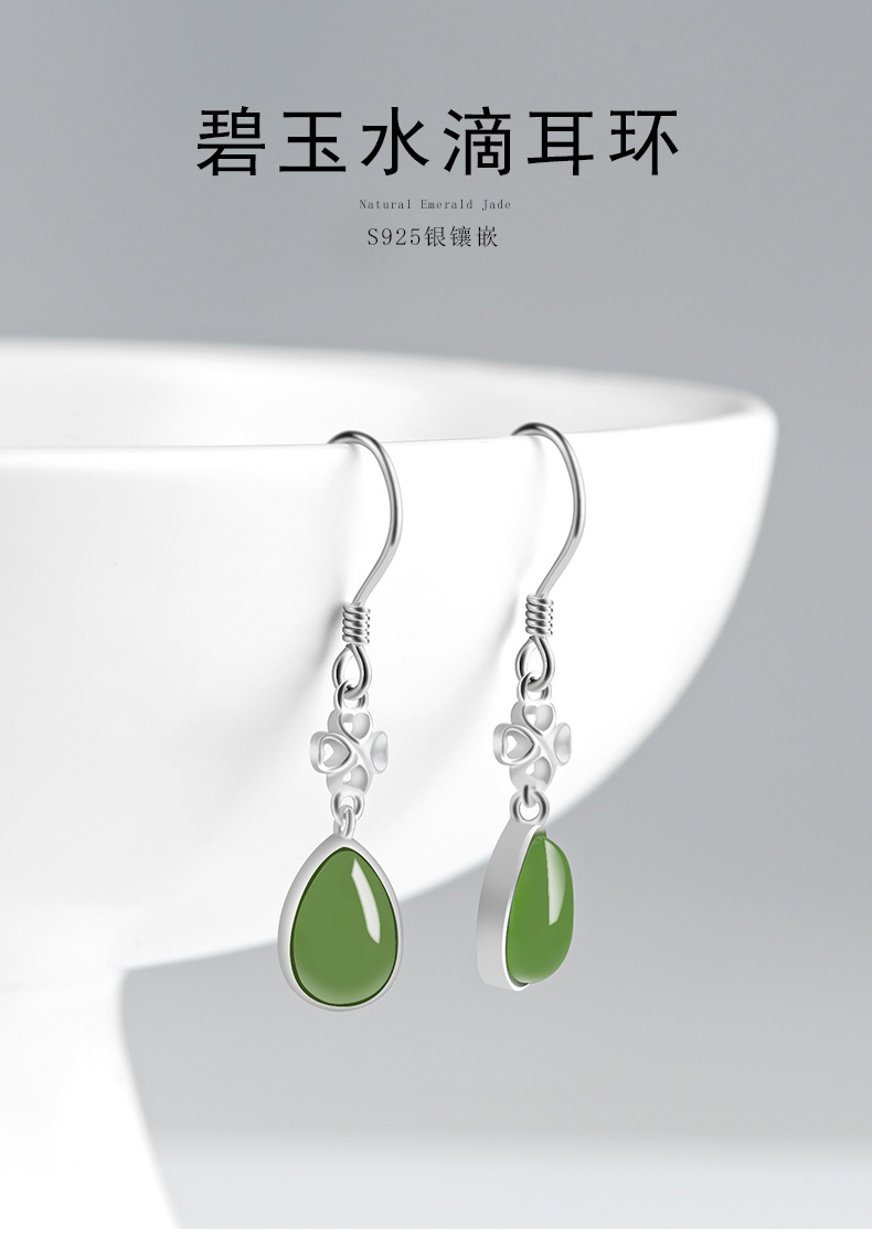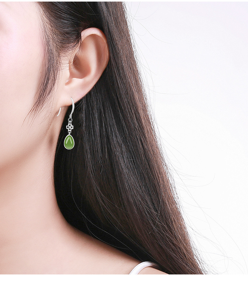 Оригинальные товары S925, инкрустированные серебром из натурального гетанского нефрита, яшма, капли воды, нефритовые серьги с высоким чувством, темперамент, женские серьги, новый стиль