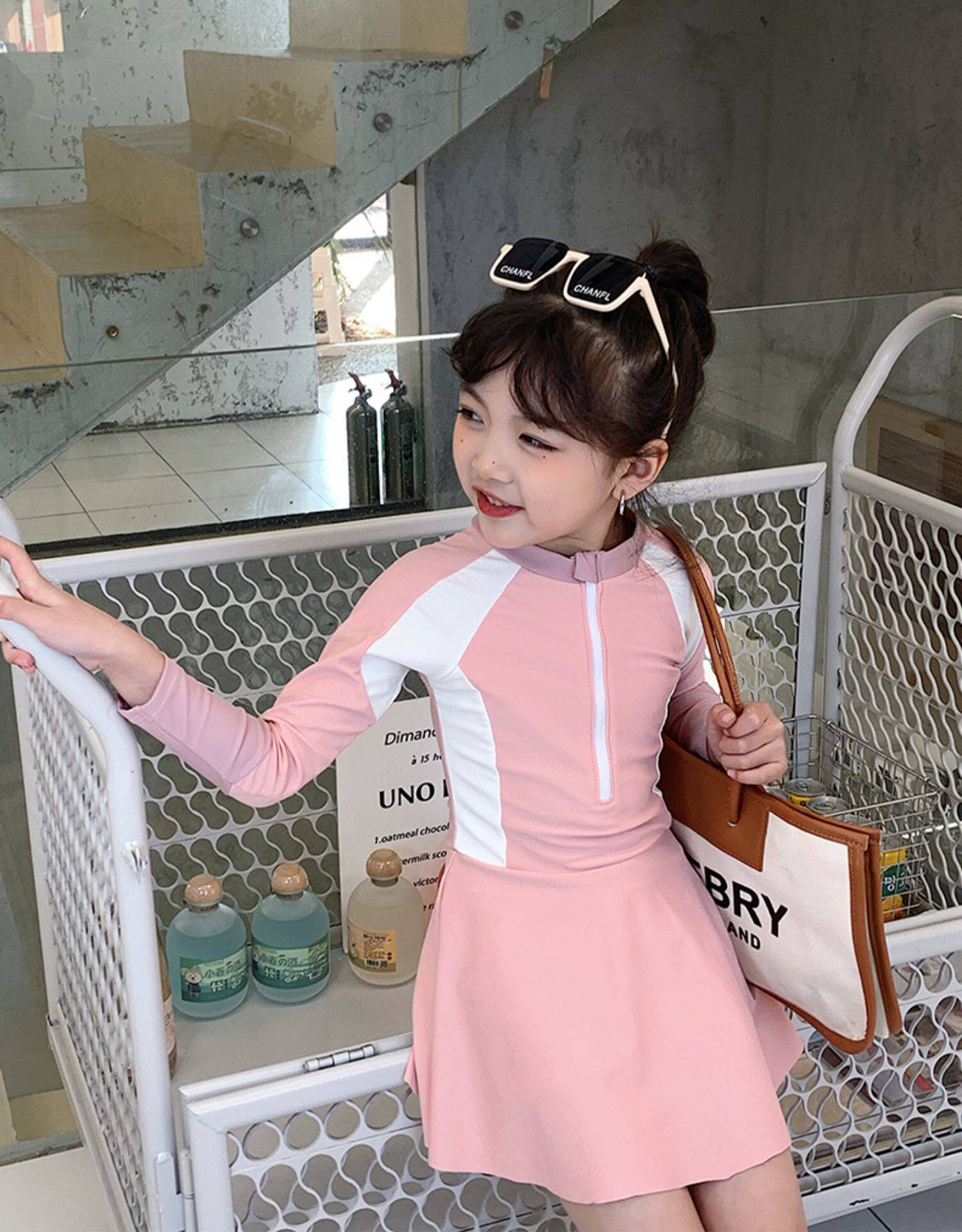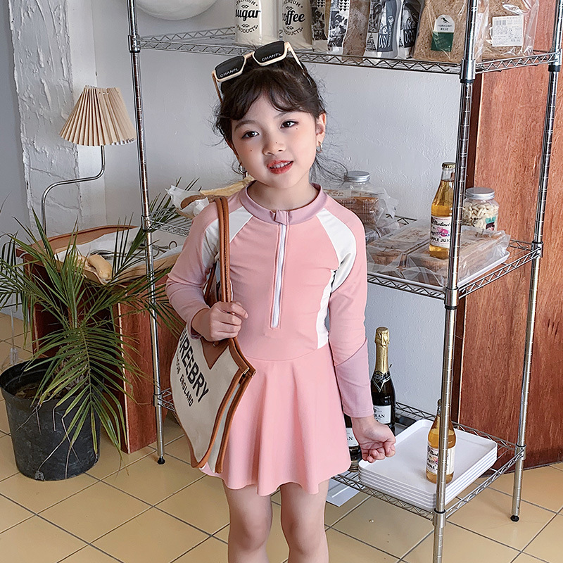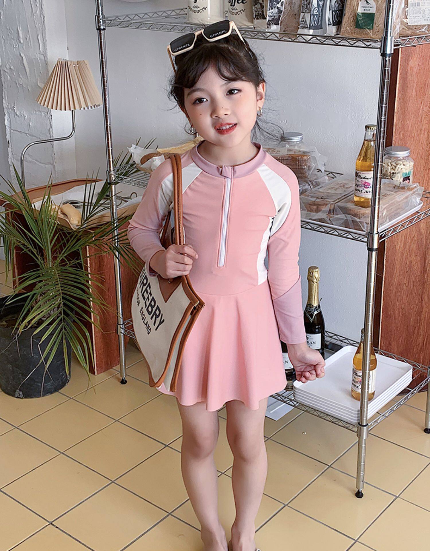 Купальник для родителей и детей для матери и дочери Девочки учатся плавать солнцезащитный крем с длинным рукавом Горячая Весна Симпатичная консервативная юбка для одного тела Семейные купальники