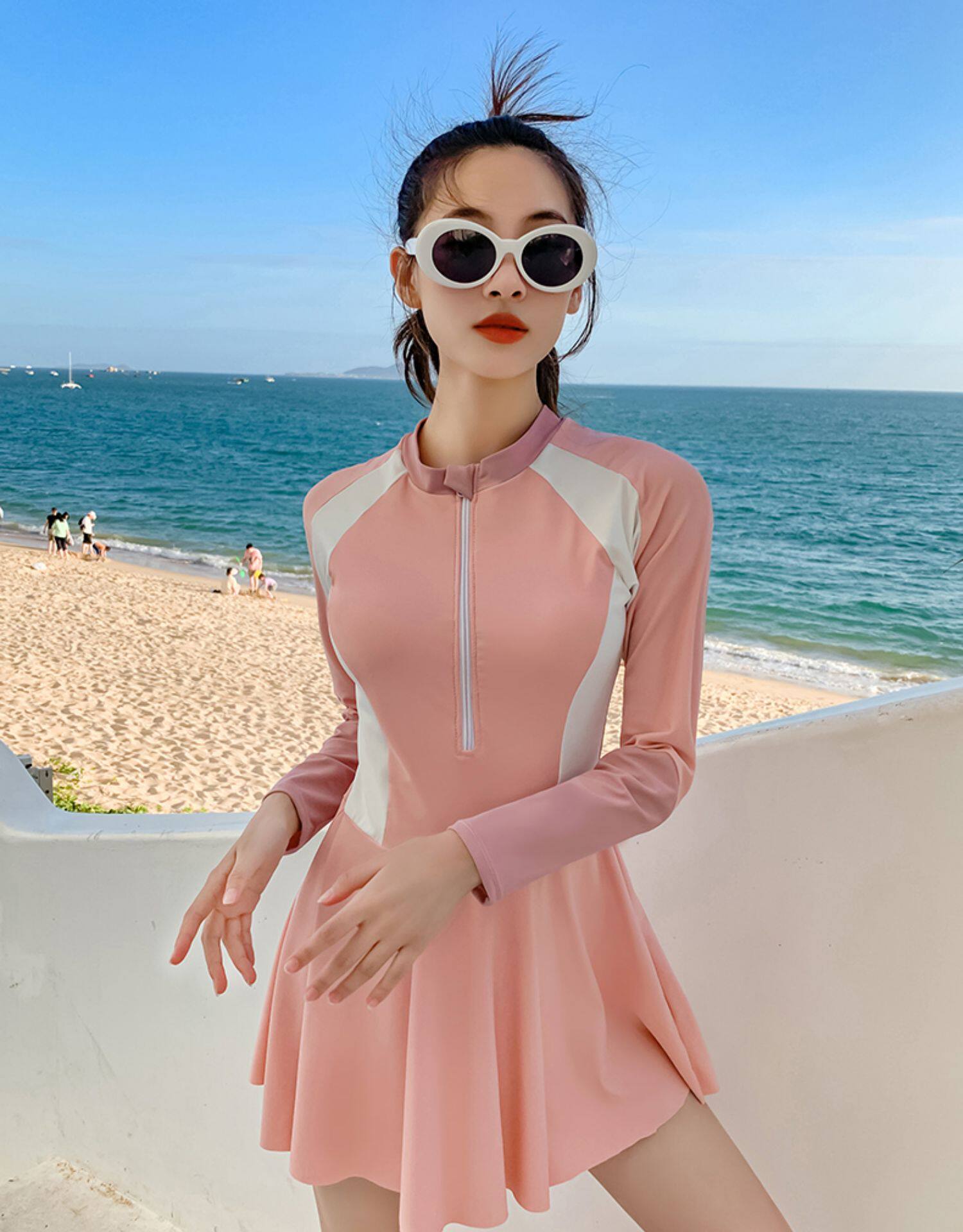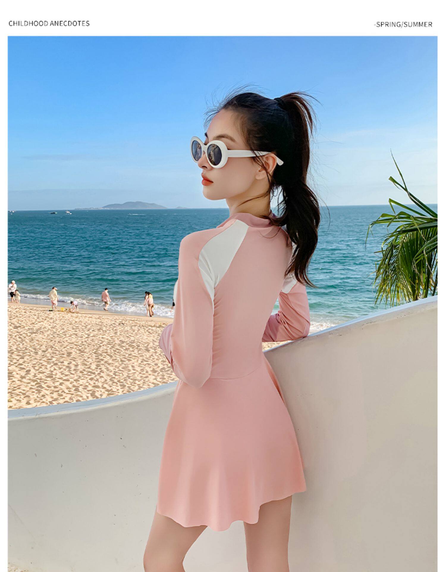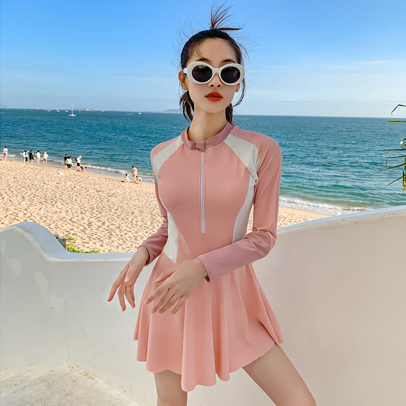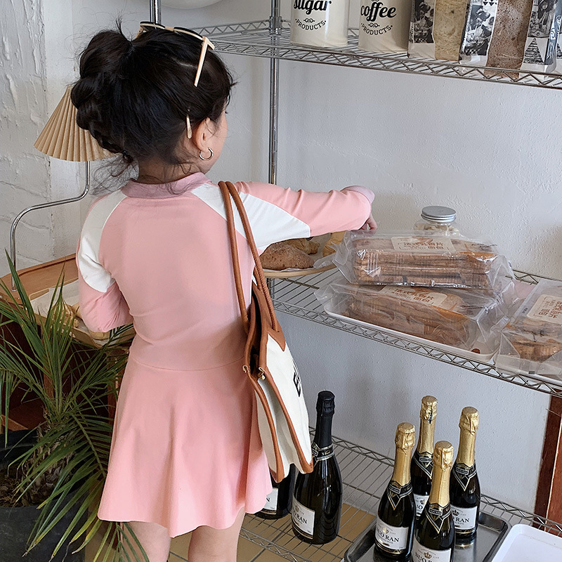 Купальник для родителей и детей для матери и дочери Девочки учатся плавать солнцезащитный крем с длинным рукавом Горячая Весна Симпатичная консервативная юбка для одного тела Семейные купальники