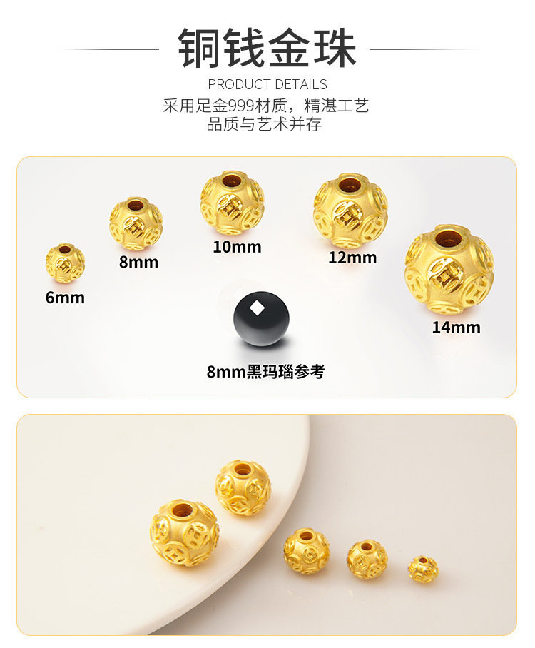 Водяная раковина Золото оптом золото 999 золотых бусин 3D твердое золотое лицо древний метод деньги Дискотека кошачий глаз ручной работы DIY аксессуары