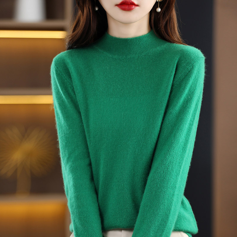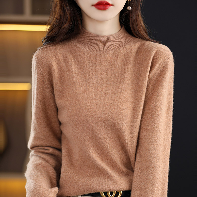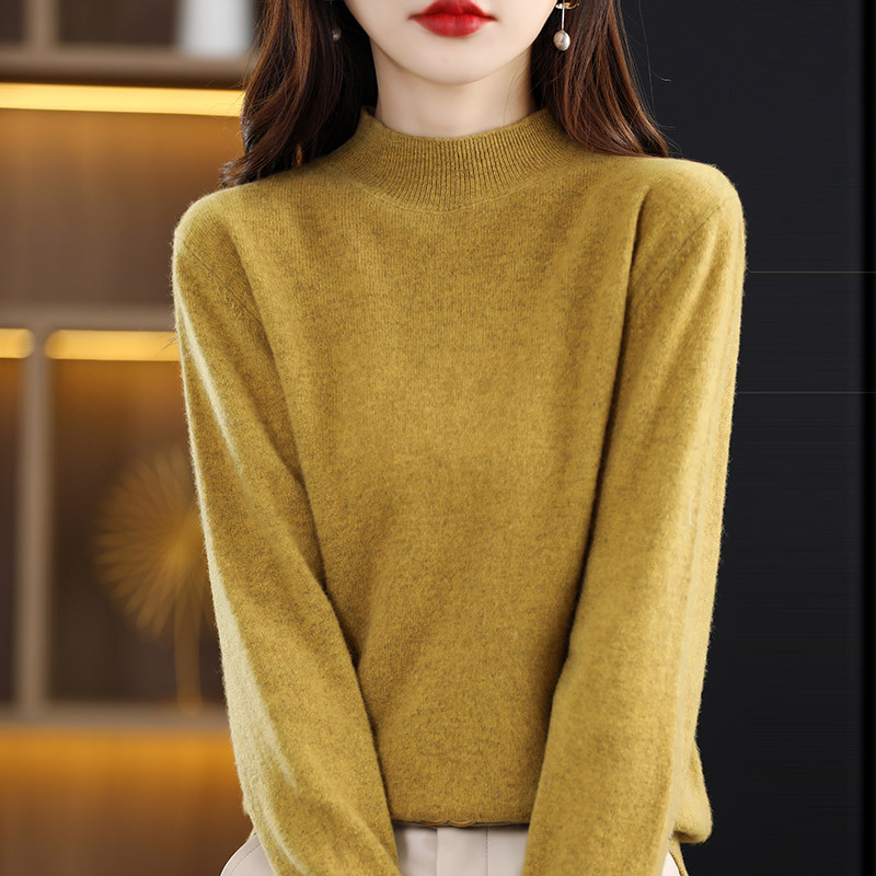 Вязаная нижняя рубашка Женская на весну, осень и зиму 2022, новая стильная внутренняя водолазка, свитер с длинным рукавом, топ со средним воротником