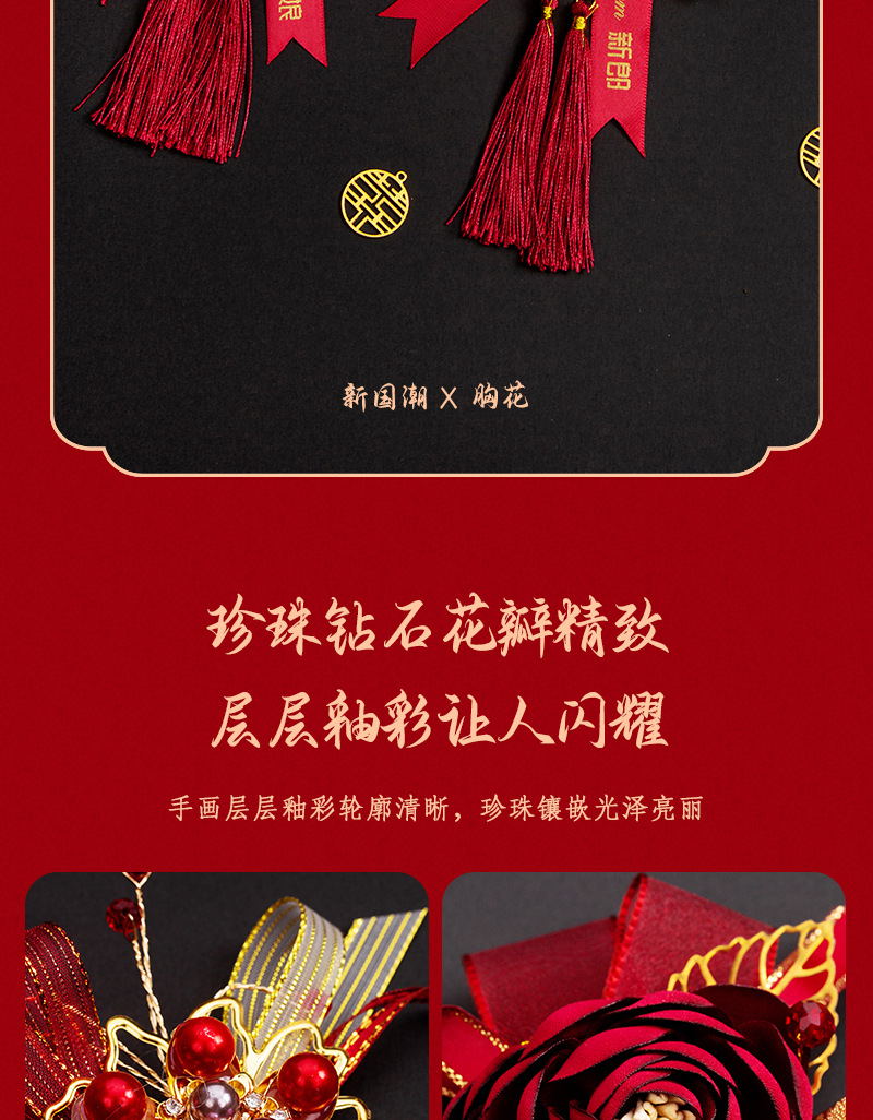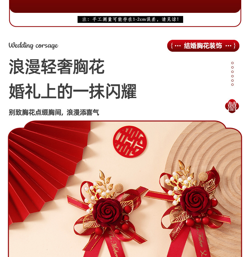 Высококачественный Китайский Свадебный корсаж Жених и невеста свадебные принадлежности счастливый персонаж полный комплект отец мать красный корсаж ручной цветок