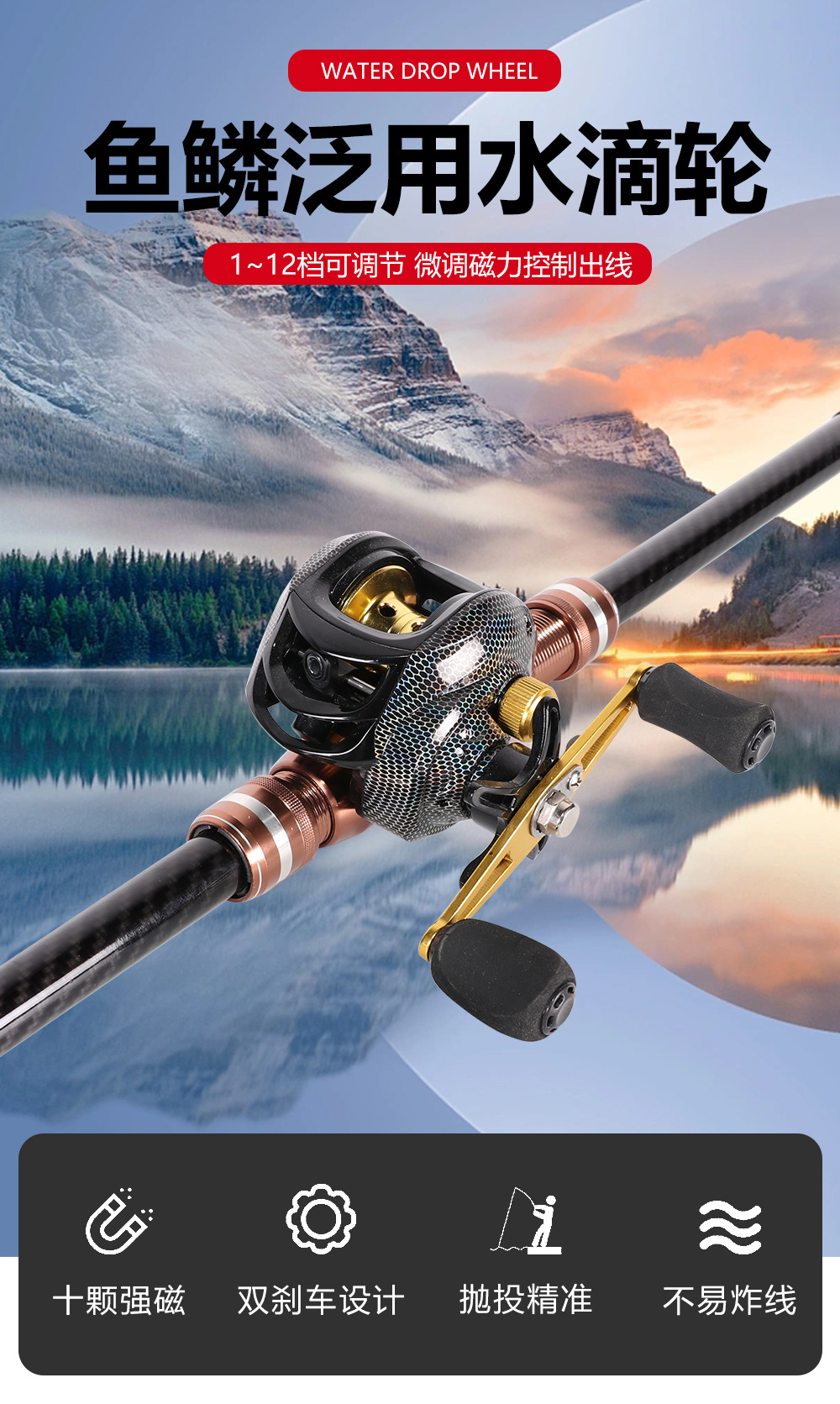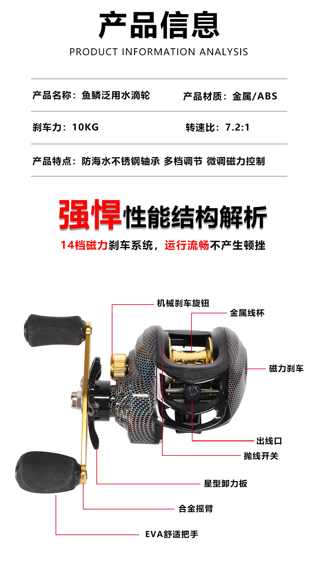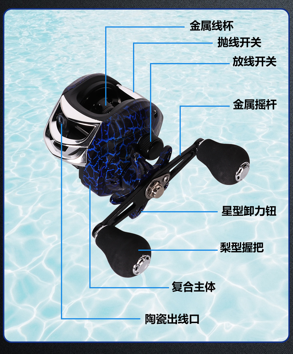 Рыболовные снасти, рыбалка на плоту, морская рыбалка, приманка, рыболовная катушка, металлическая дальнобойная антивзрывная леска, магнитный тормоз, рыбья чешуя, катушка с каплей воды, приманка.