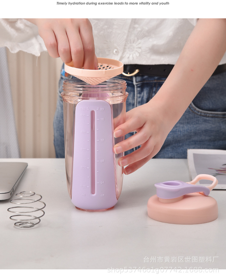 Чашка с клубникой, протеиновый порошок, шейкер для молочного коктейля, чашка со шкалой, чашка для сока, воды, портативная пластиковая чашка для фитнеса