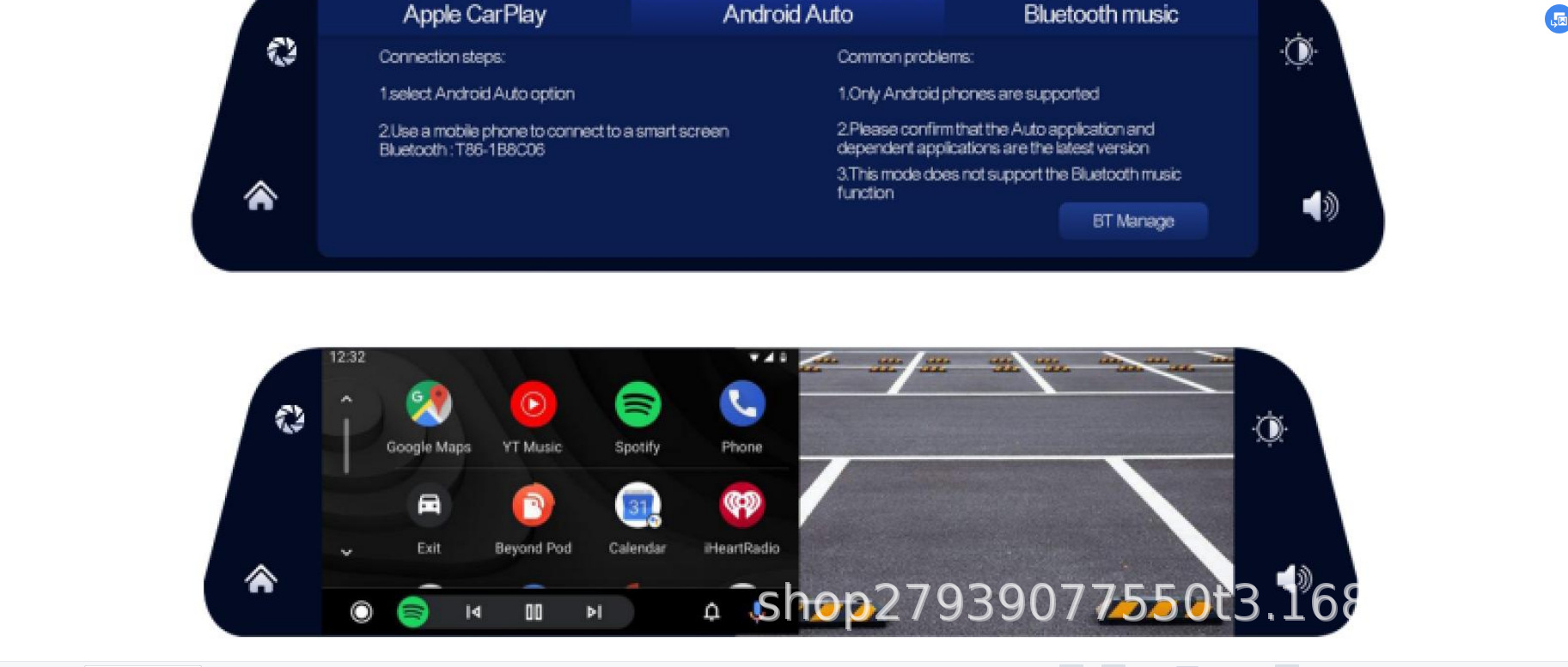 9.66inch CarPlay/Android AUTO/Apple Airplay/Проекция экрана/Зеркало заднего вида с поддержкой карты TF, двойная запись, высокое разрешение
