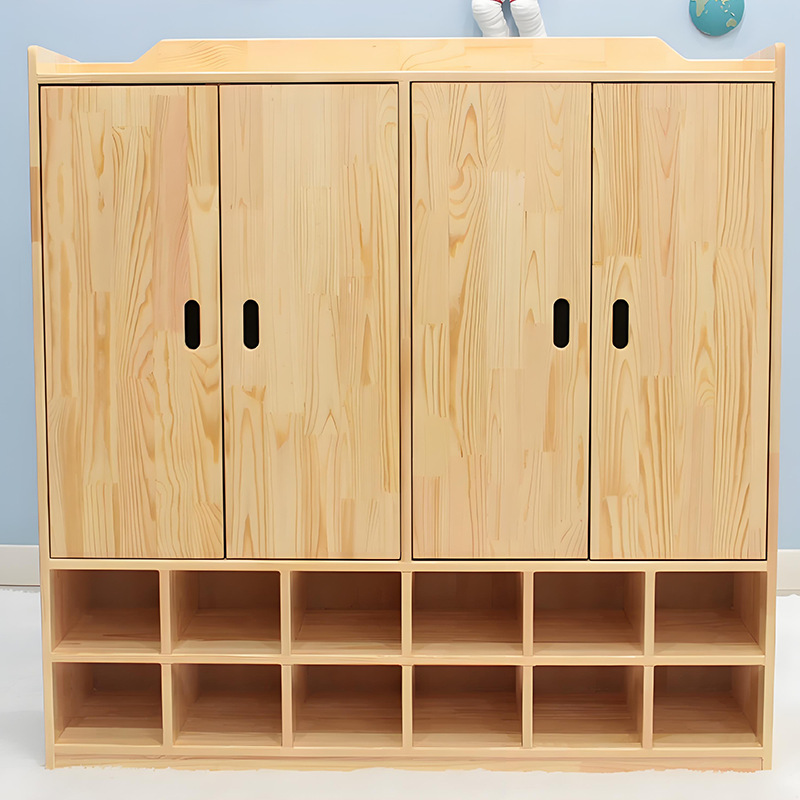 Раннее образование Стеллаж для хранения детского сада из массива дерева Детский шкаф для хранения игрушек Комбинированный шкаф для обучающих инструментов Монтессори Книжная сумка Шкаф Угловой шкаф