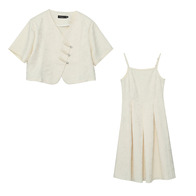 注:吊带裙裙摆处做有内衬,外套无内衬