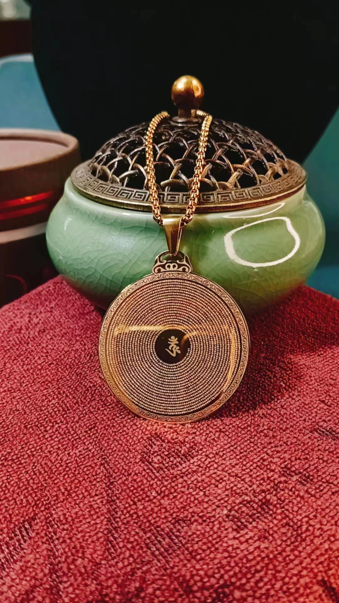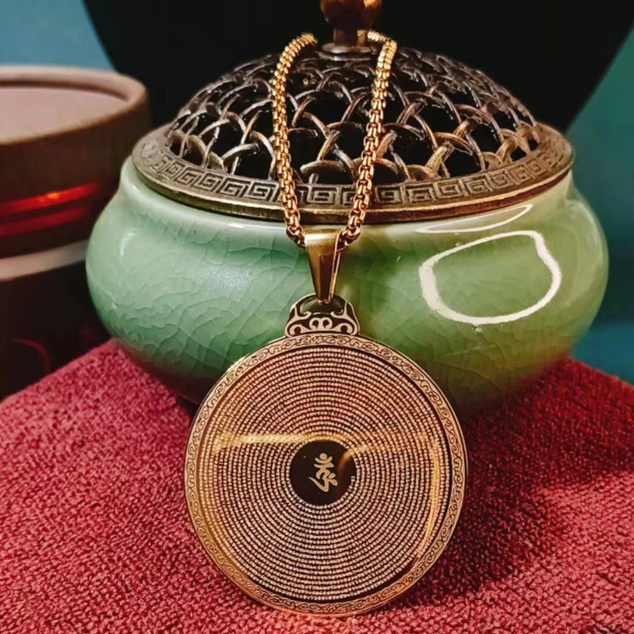 Титановая сталь большая гофрированная заклинание подвеска национальный ветер ожерелье мужчины ретро подвеска женские украшения 18k позолота не выцветает