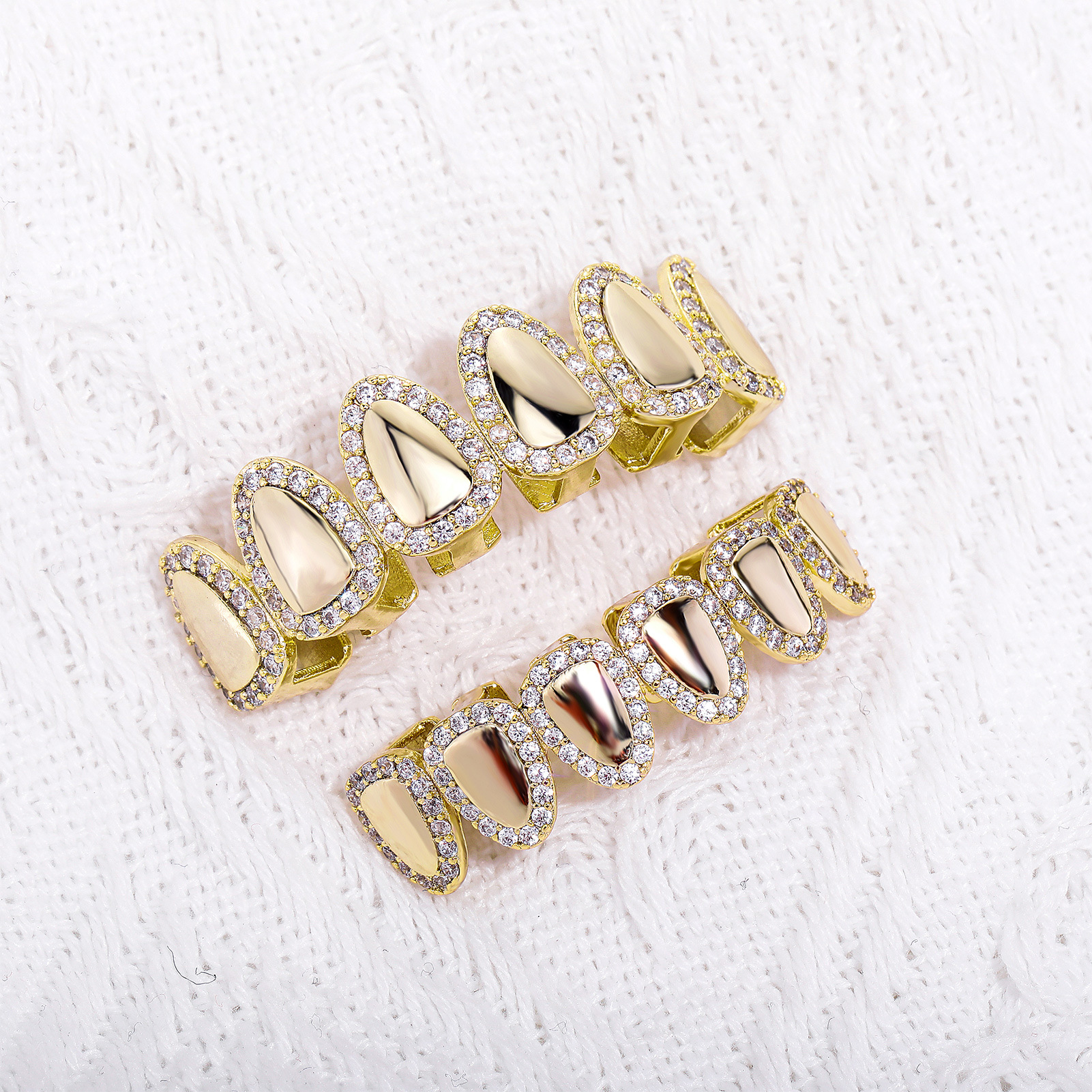 Золотая Австралия Трансграничные хип-хоп брекеты Зеркало Любовь Цирконий Большие Золотые Зубы Хэллоуин HIPHOP Модные аксессуары
