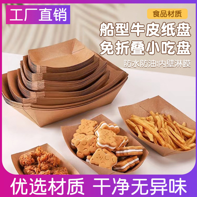 Одноразовая коробка для завтрака Коробка для лодок из крафт-бумаги бумажная коробка тарелка для барбекю Картофель фри жареная курица с кожурой сладкого картофеля и сушеным творогом упаковочная коробка разлагаемая