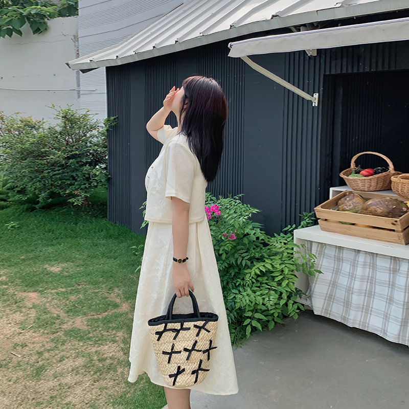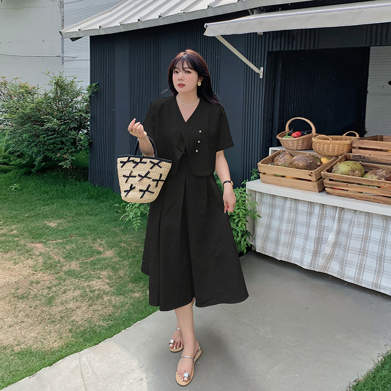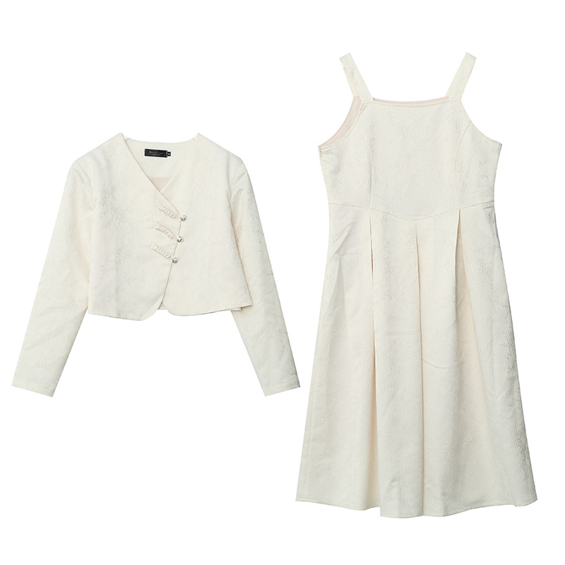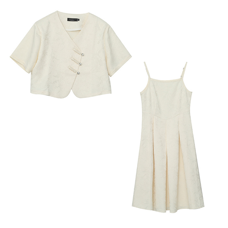 上衣做了对襟领+盘扣设计,彰显柔美感