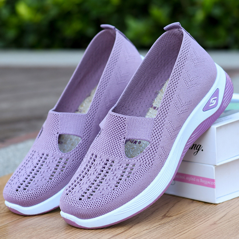 Летняя женская обувь Старая пекинская тканая обувь нескользящая вырезая воздухопроницаемая легкая и удобная обувь для матерей среднего и пожилого возраста