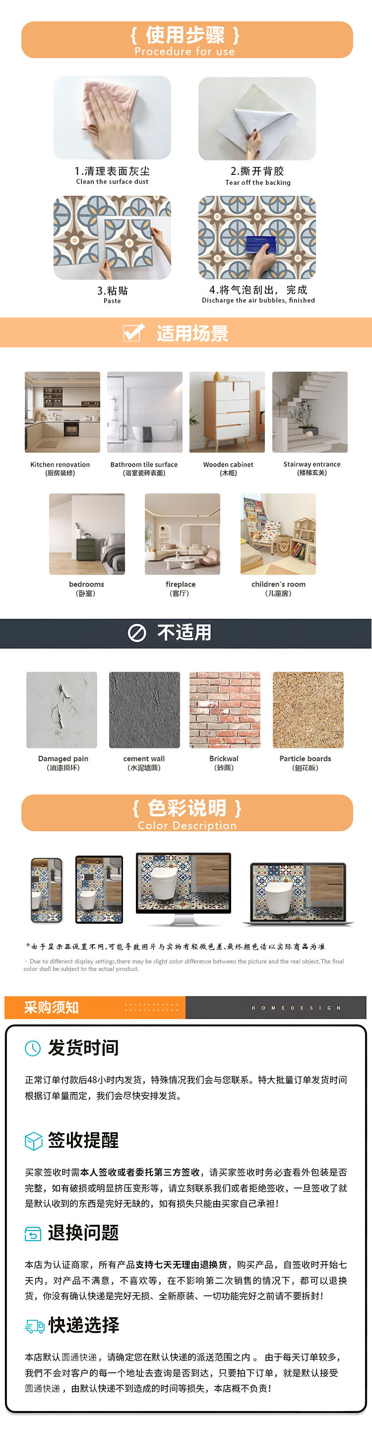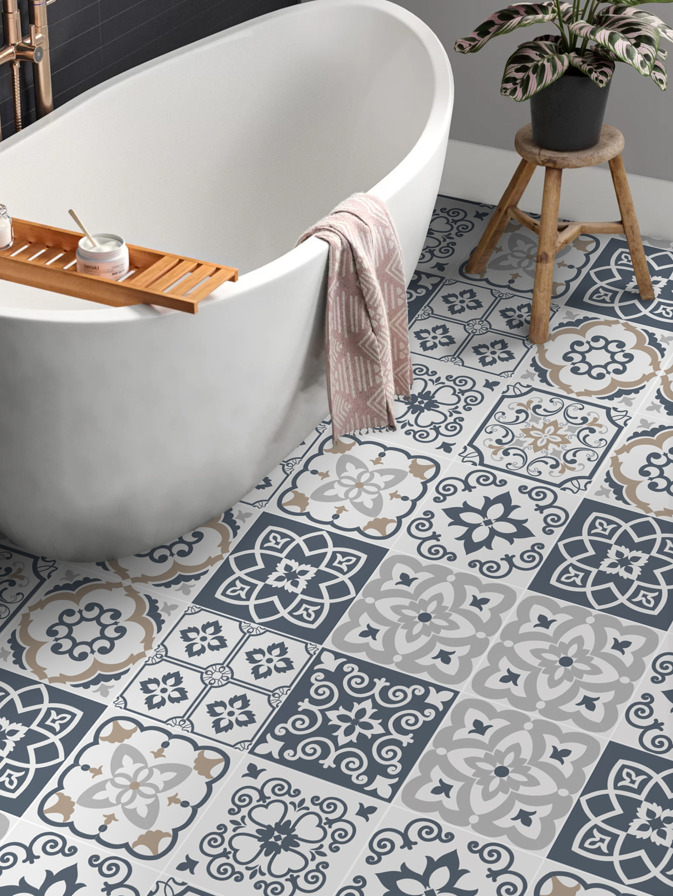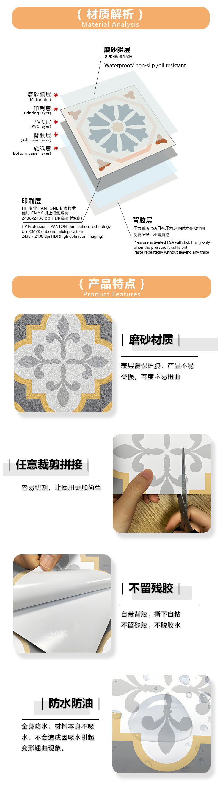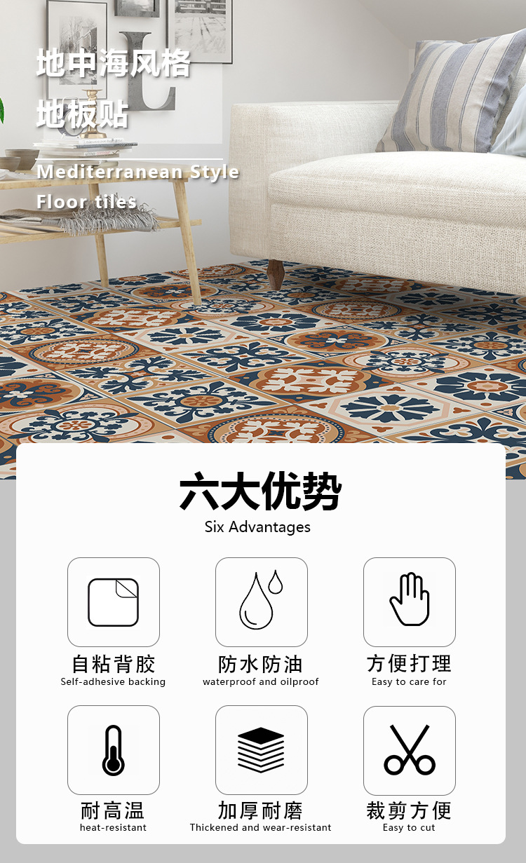 Утолщенная гостиная в средиземноморском стиле, износостойкие ретро-наклейки на пол из ПВХ, матовая напольная плитка, самоклеящиеся наклейки на стену для ванной комнаты