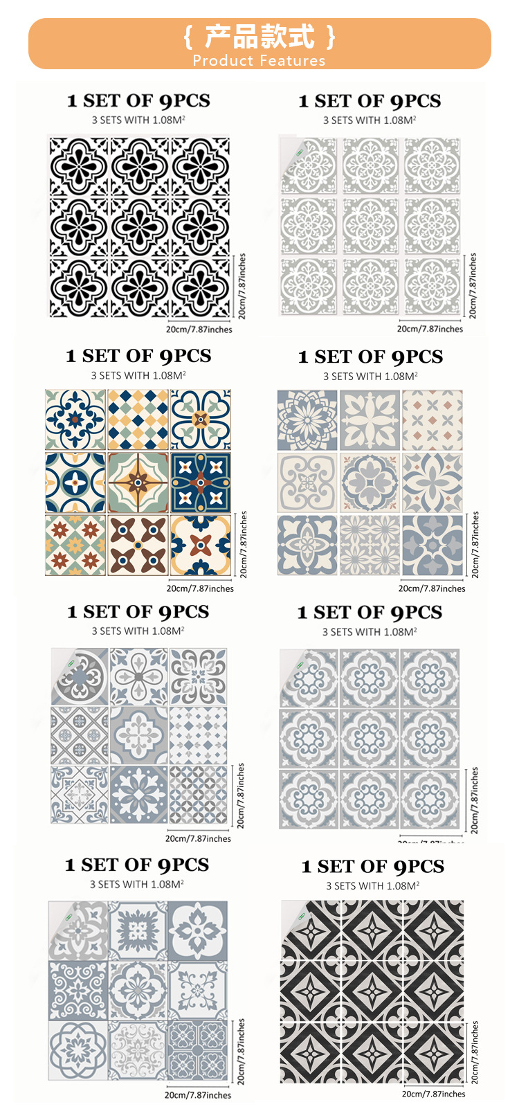 20cm*20cm*9pc; 30cm*30cm*9pc