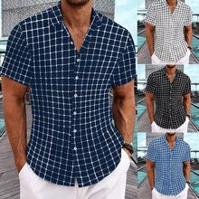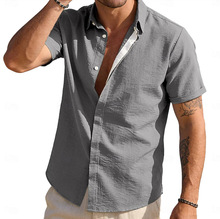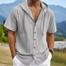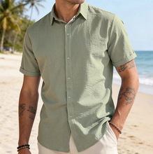 Мужская льняная футболка с короткими рукавами, свободная майка, однотонная рубашка из хлопка и льна с короткими рукавами, мужская пляжная мужская рубашка больших размеров с короткими рукавами